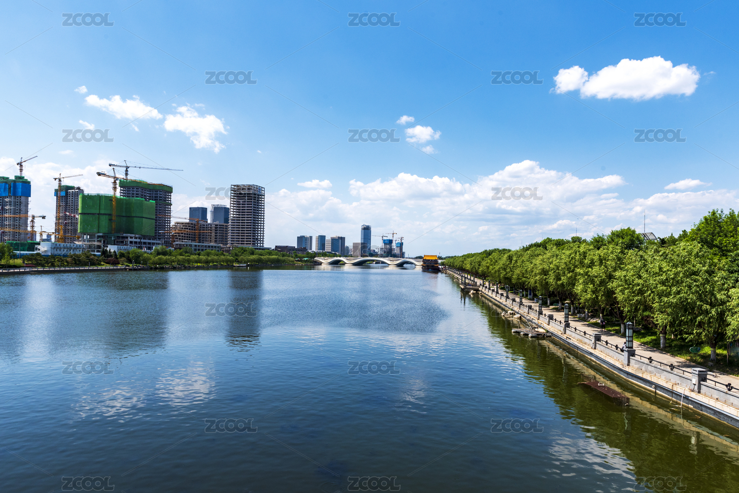 北京城市副中心北運河西岸藍天綠草城市風貌