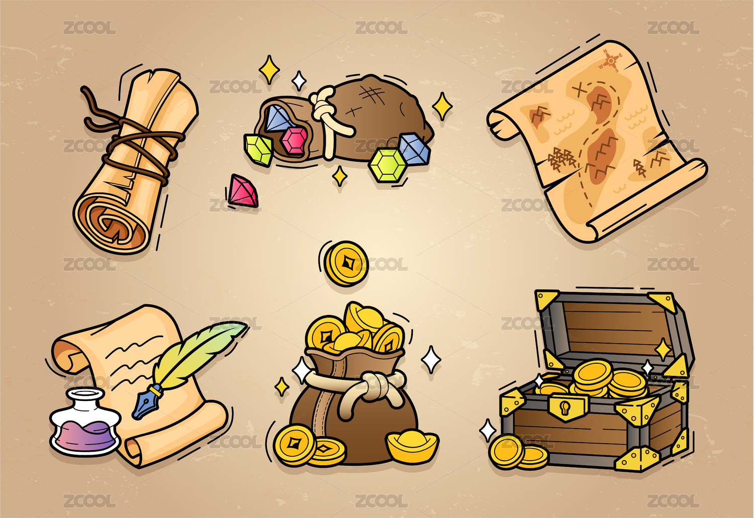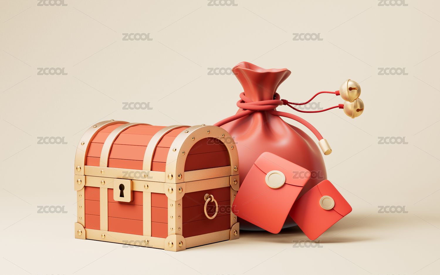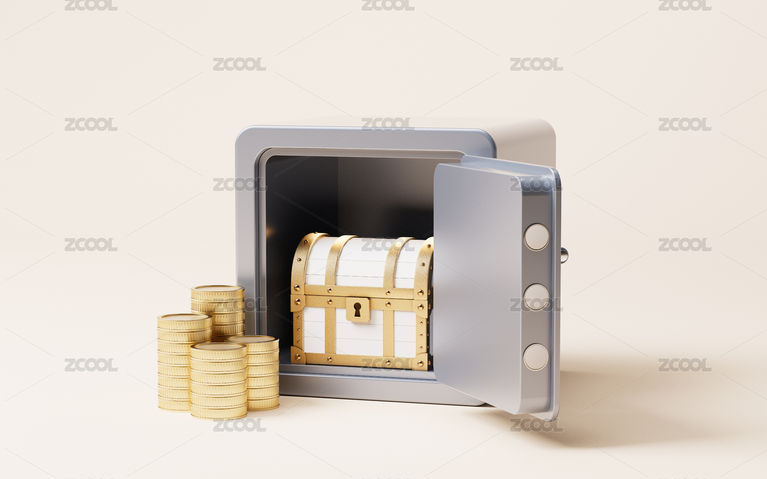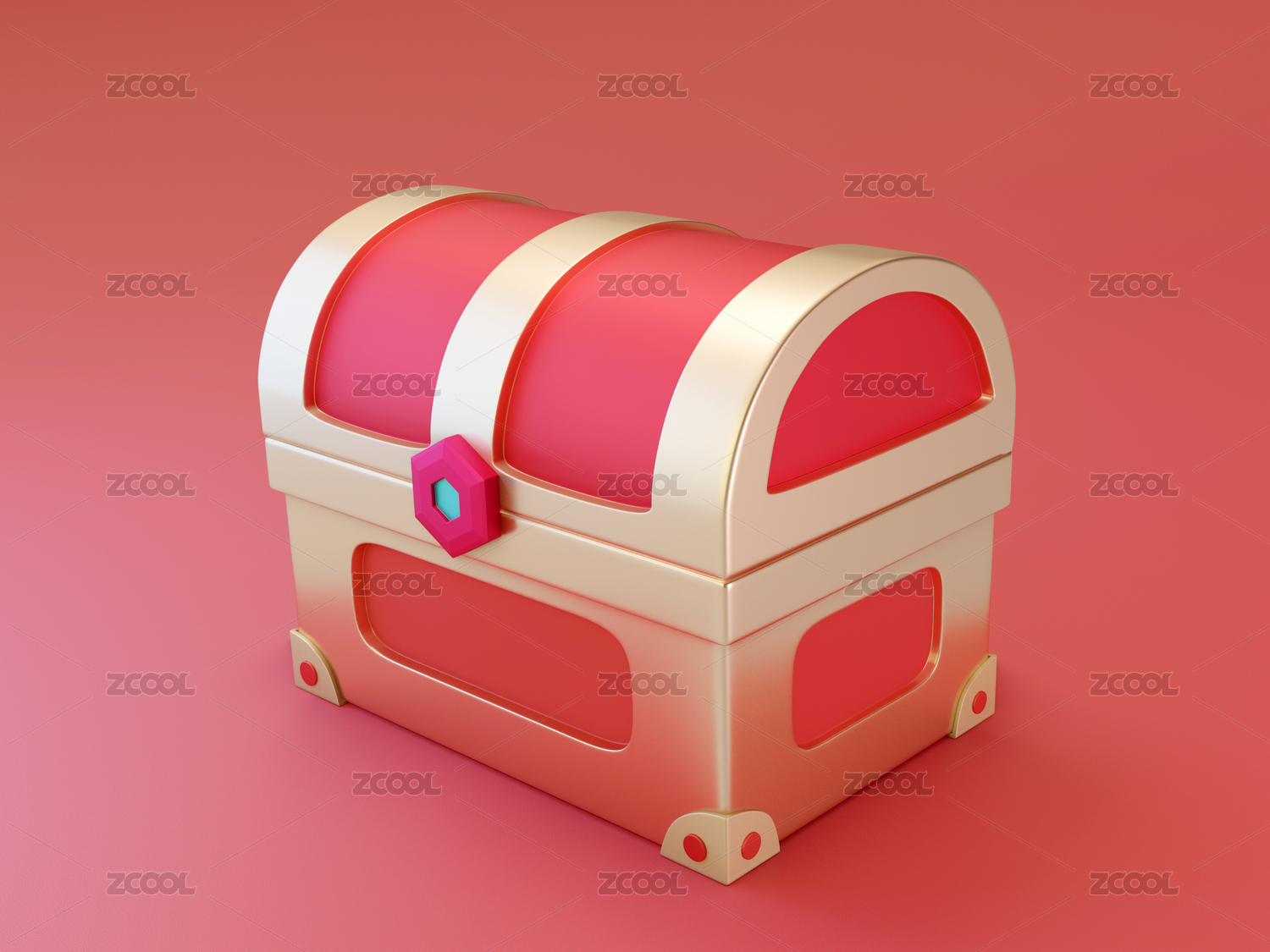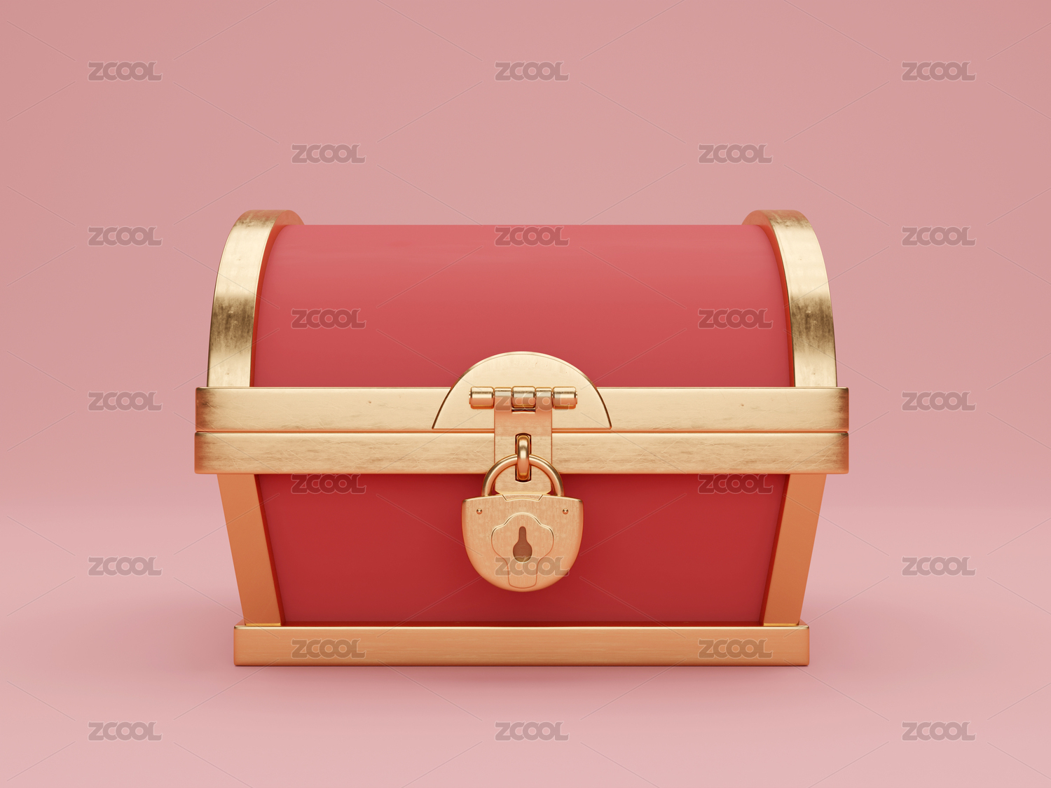 3D質(zhì)感游戲財(cái)富帶鎖寶箱