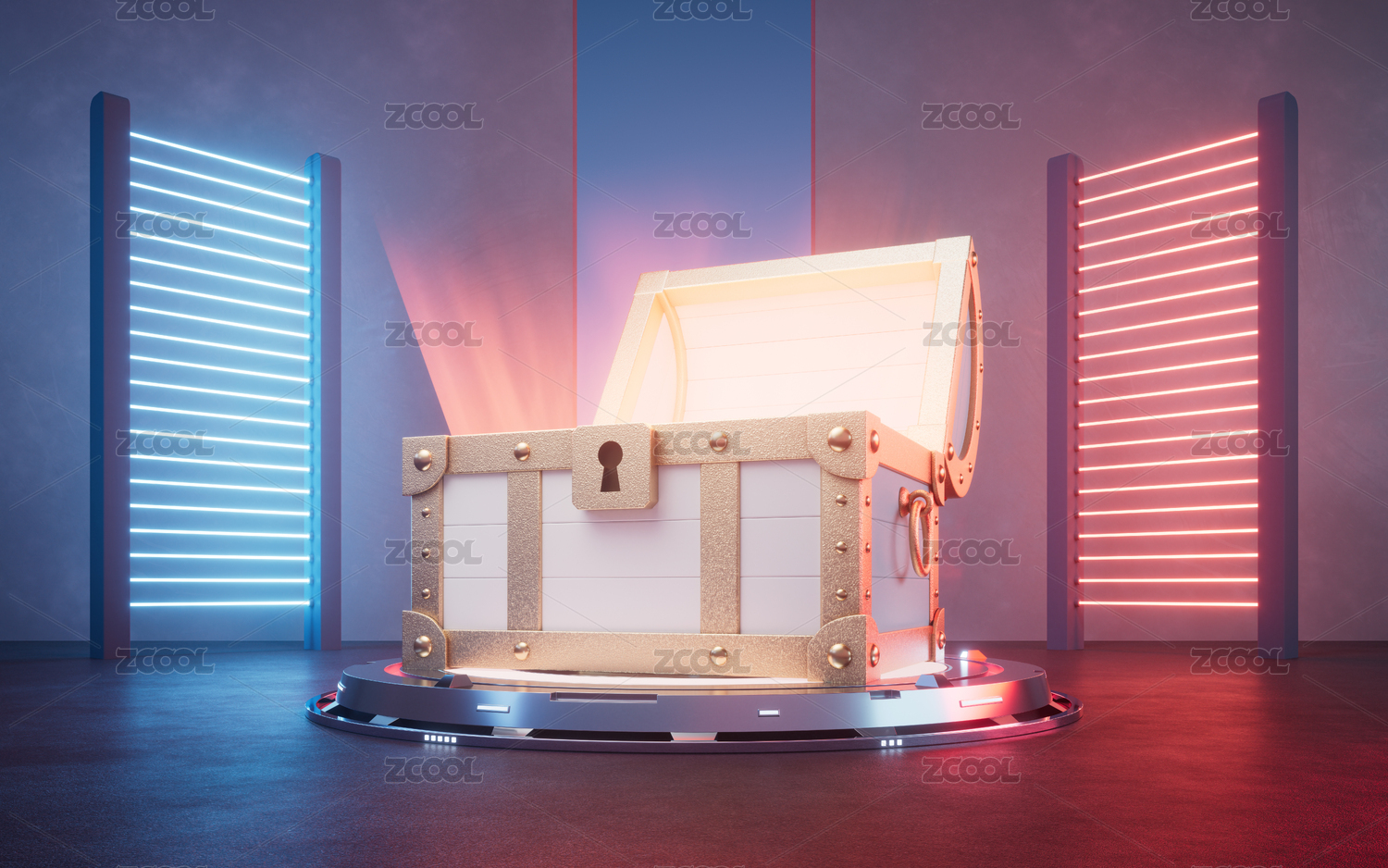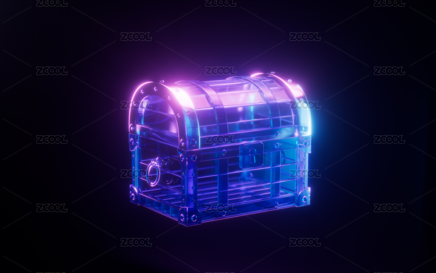 卡通風(fēng)格霓虹寶箱寶藏三維渲染