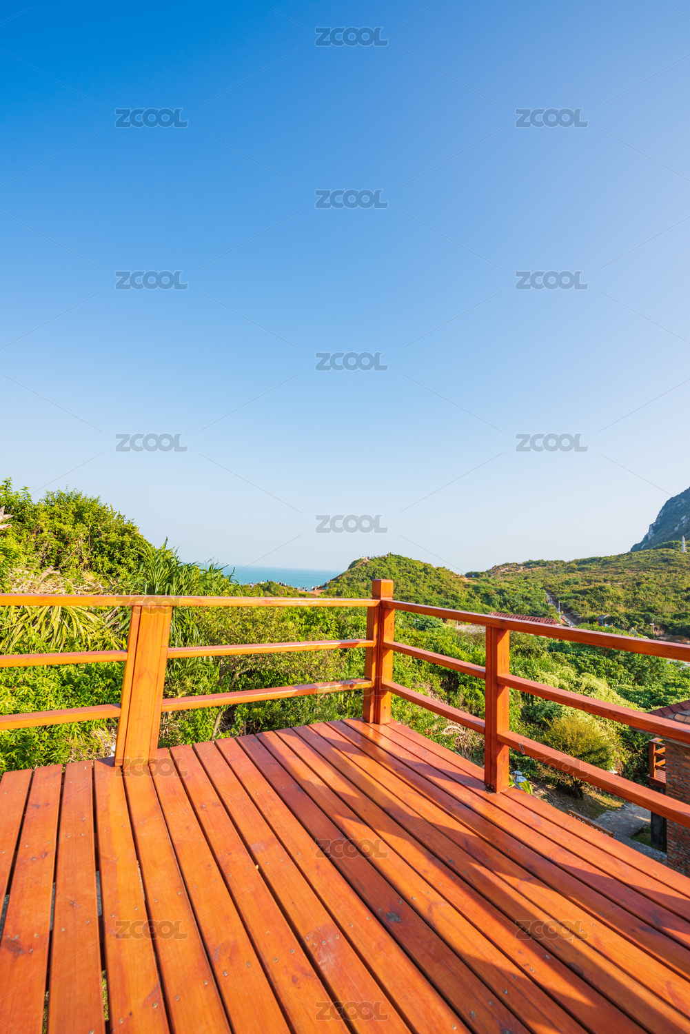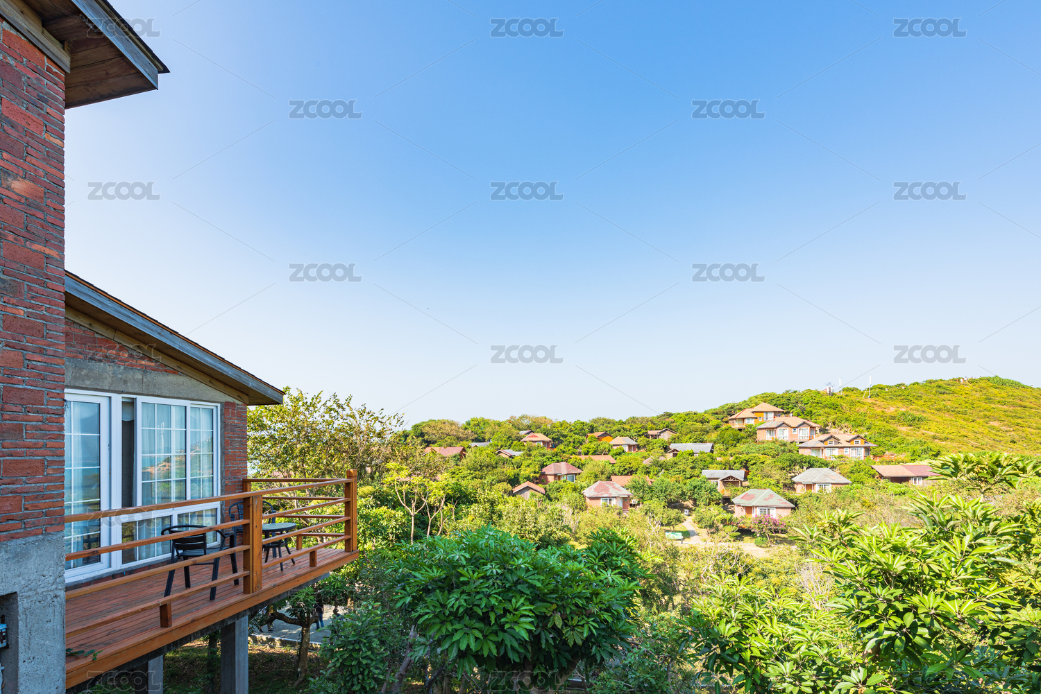 中國深圳大鵬楊梅坑鹿嘴山莊度假小屋前的陽臺與樓梯
