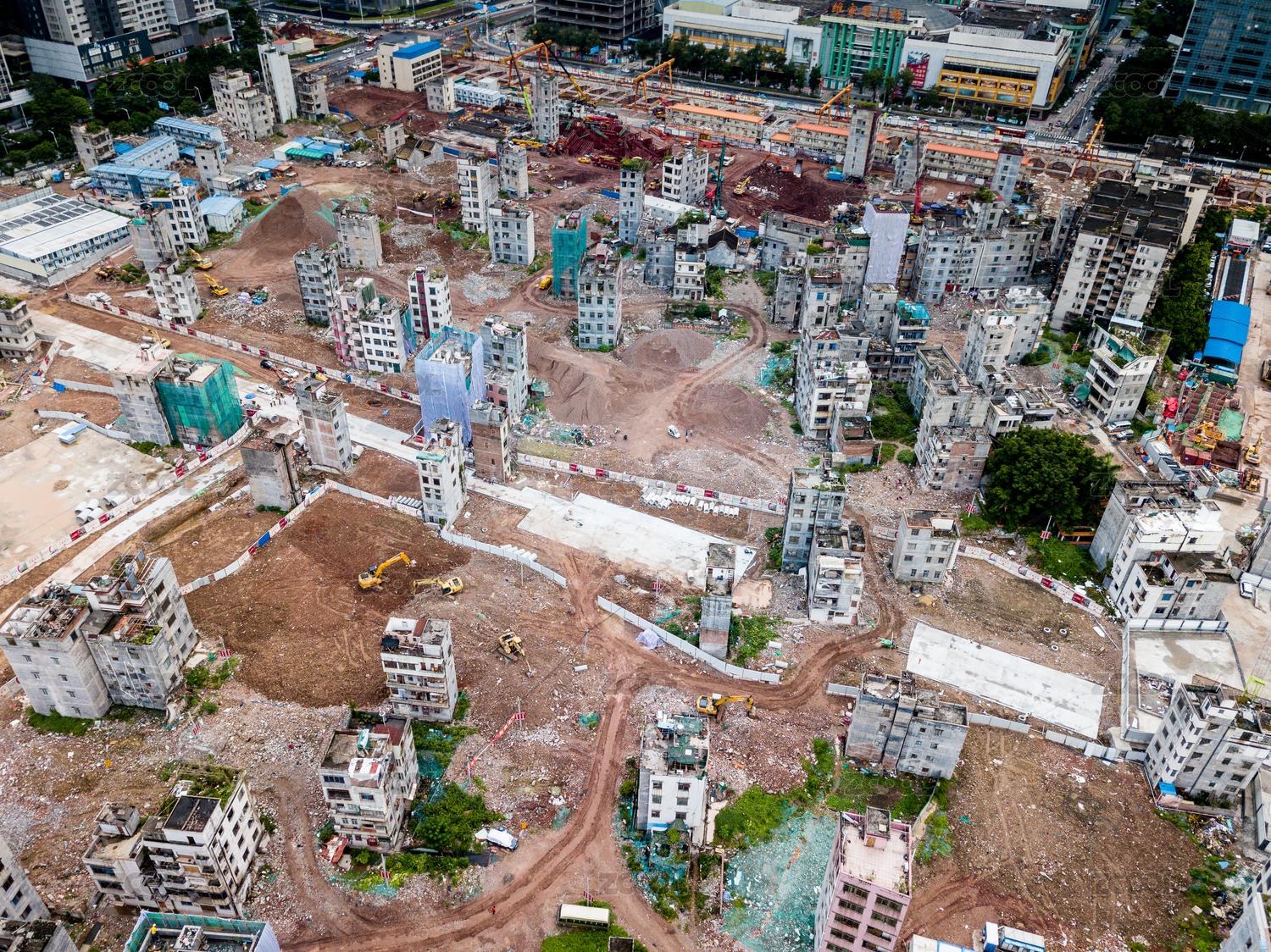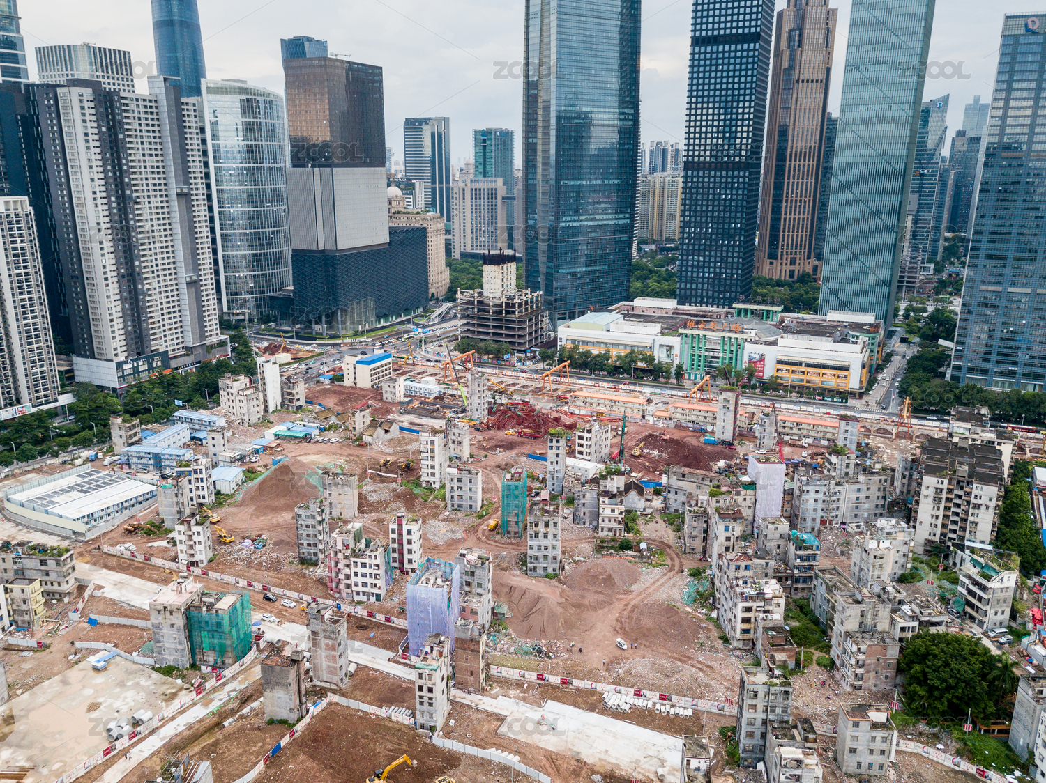 航拍廣州城中村冼村拆遷
