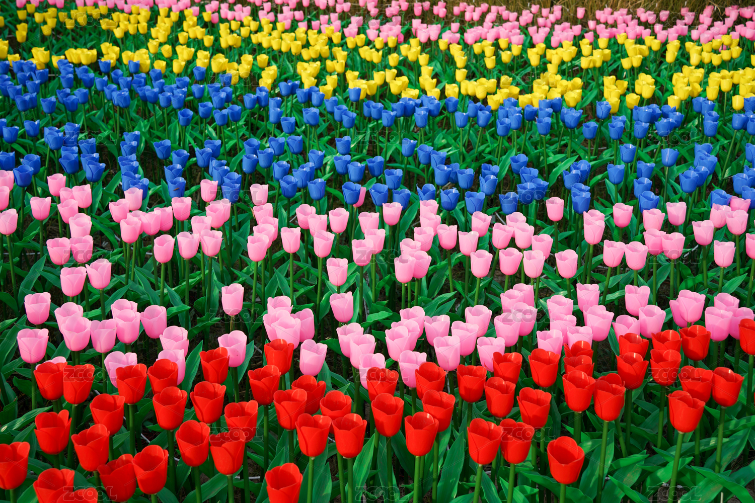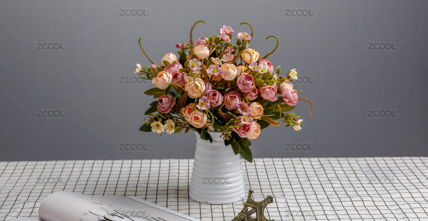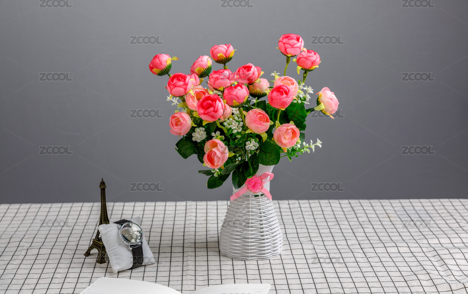 擺放在桌面上花瓶里的裝飾假花郁金香