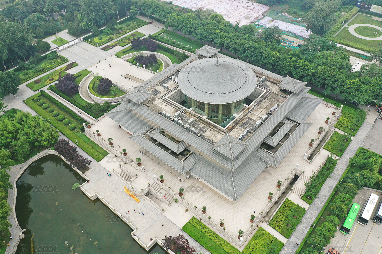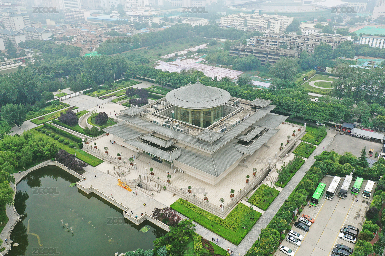 航拍中國西安城市旅游地標建筑景觀——西安博物館