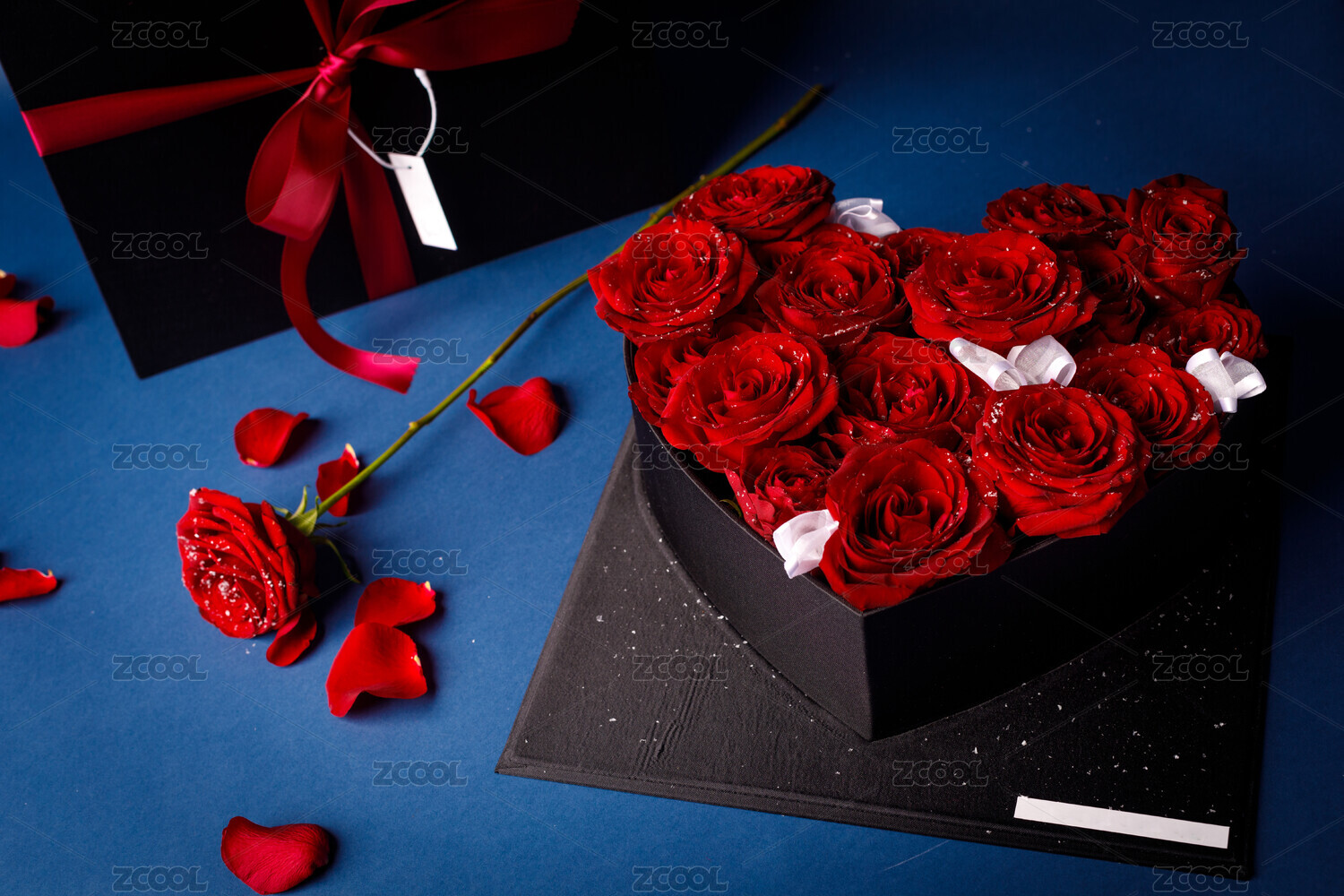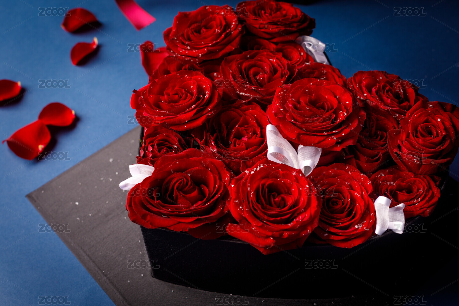紅色背景上的一簇七夕節(jié)情人節(jié)鮮花紅玫瑰花