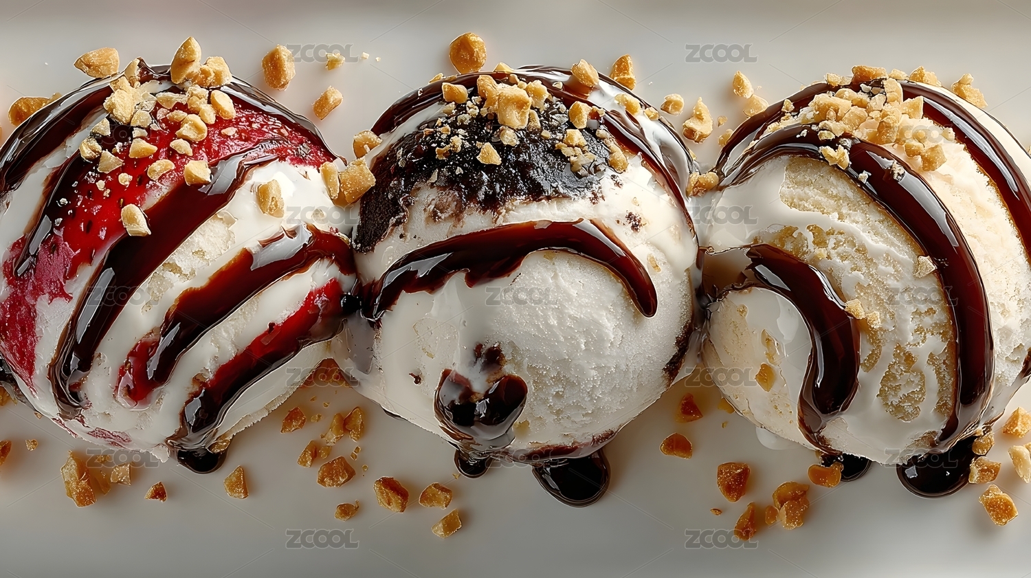冰淇淋球巧克力醬堅果裝飾