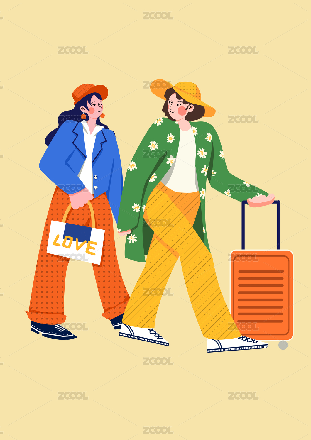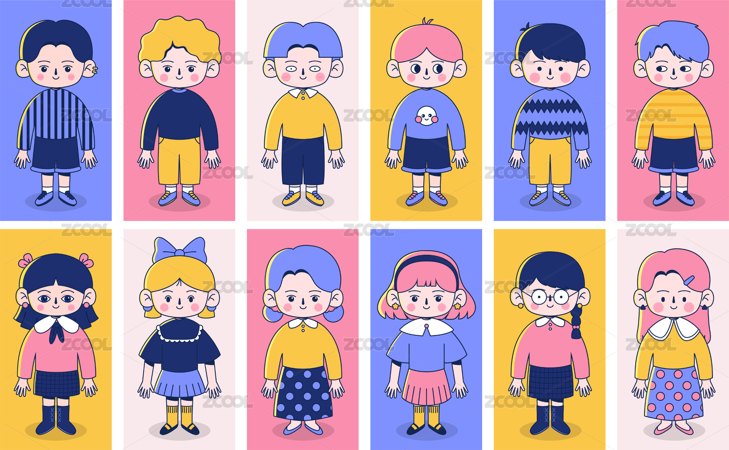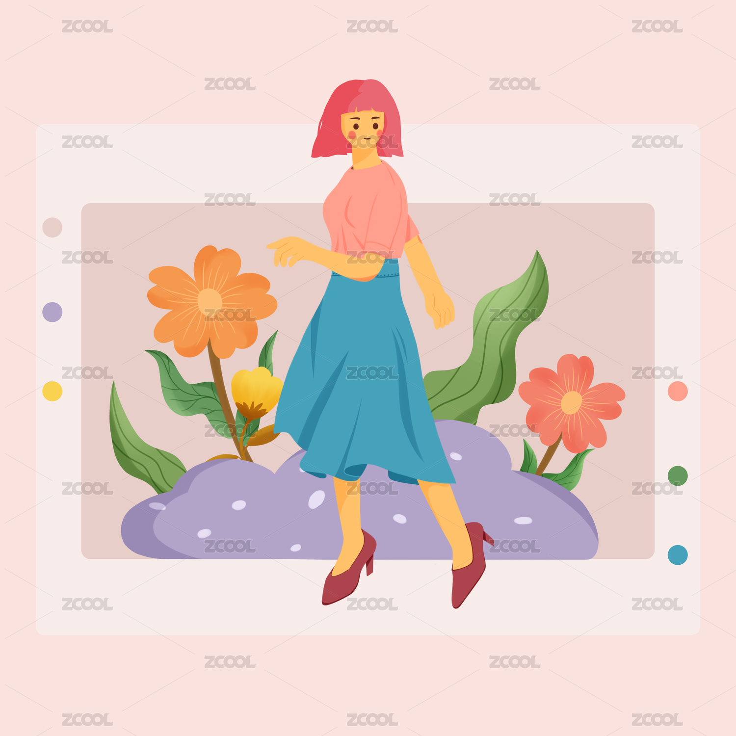 扁平人物扁平矢量人物動物互動玩耍復(fù)古插畫
