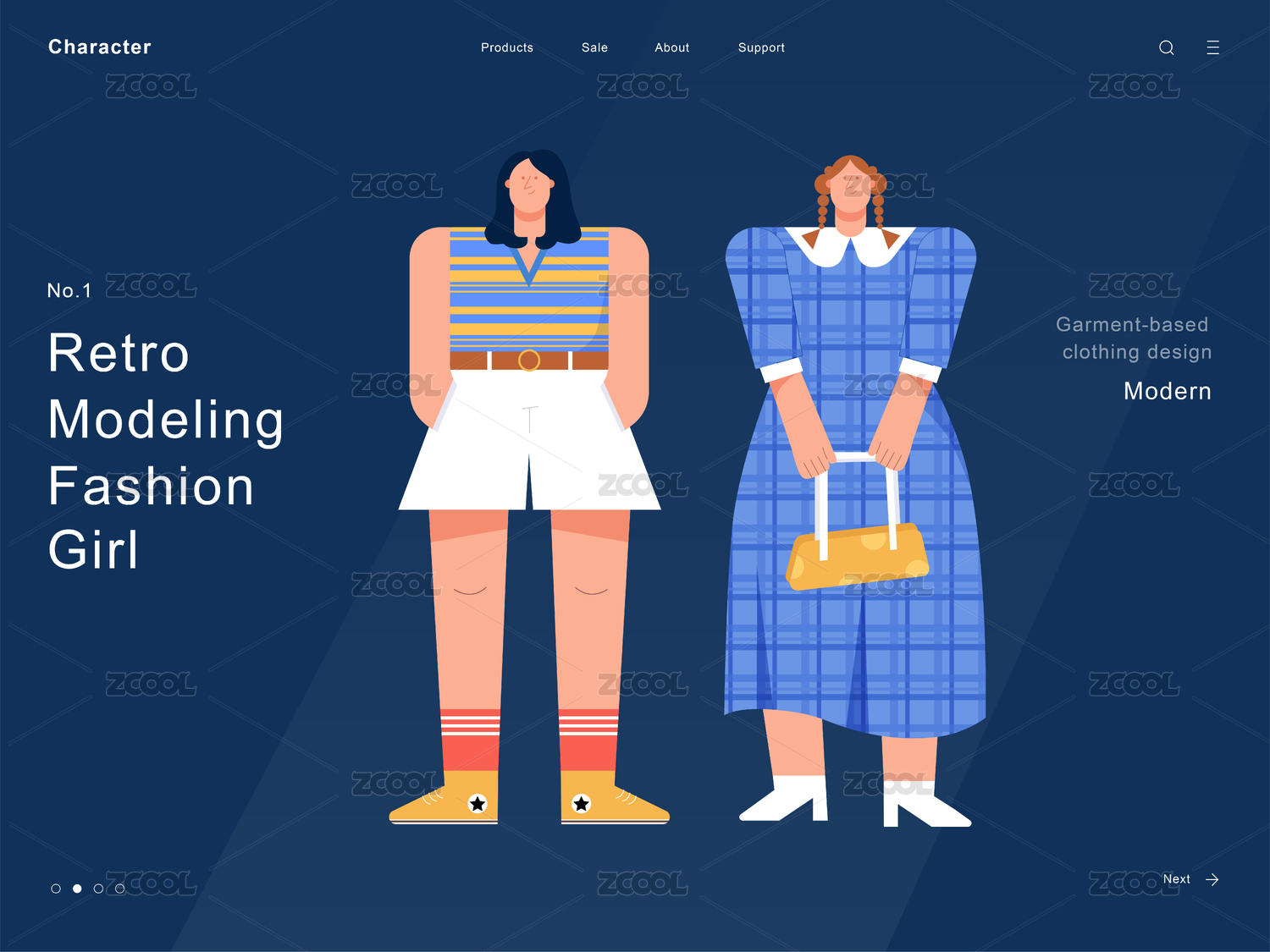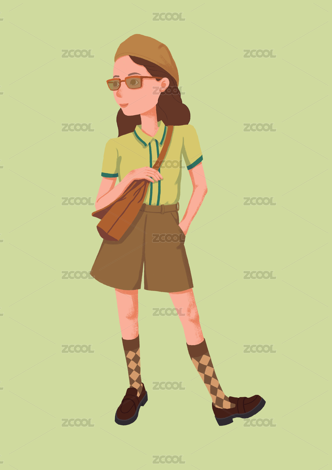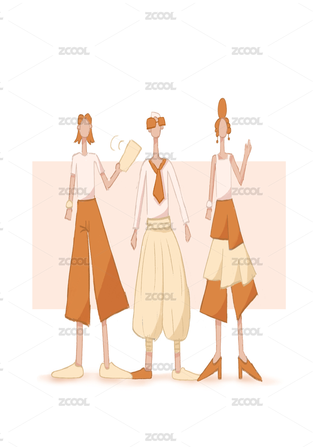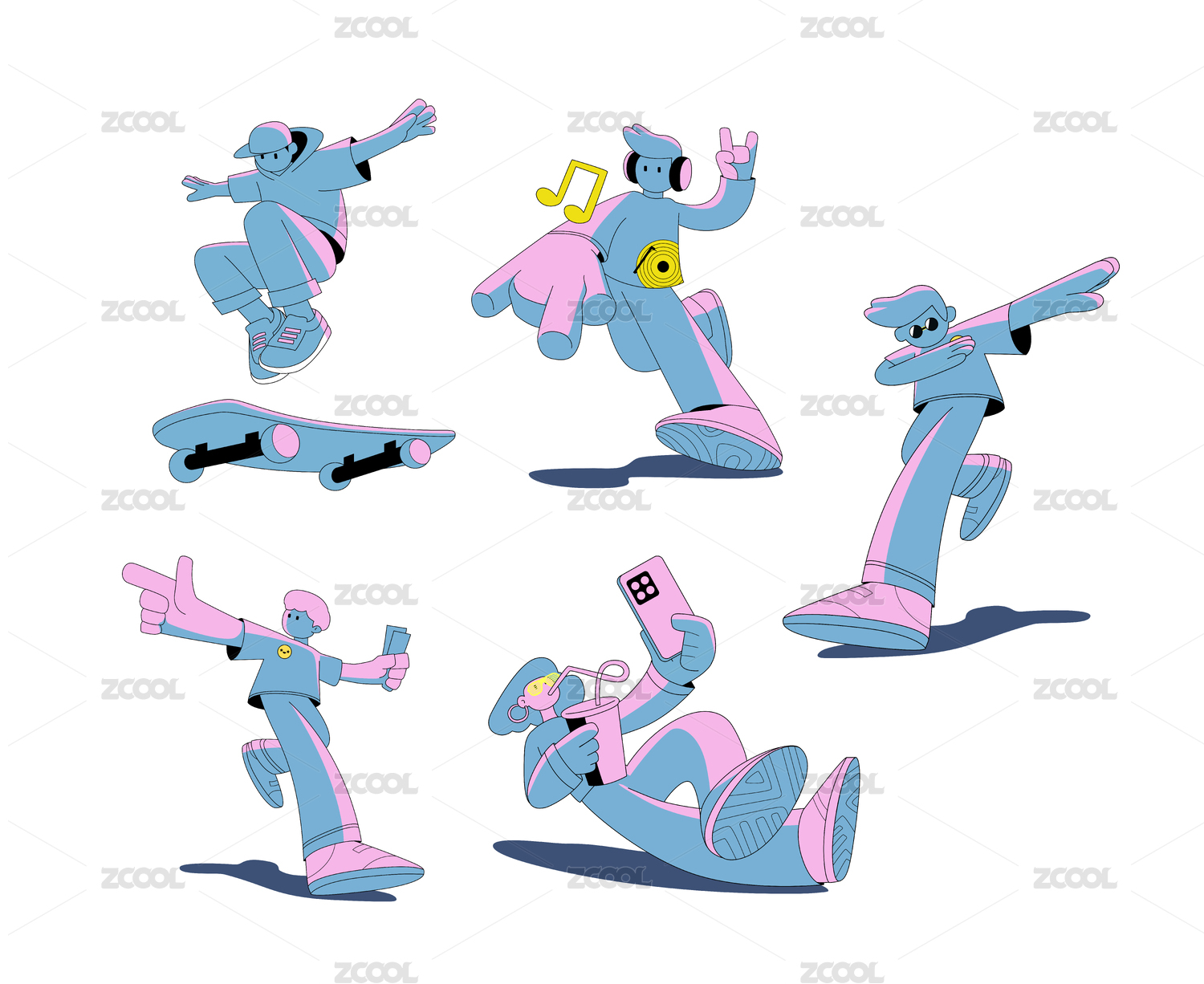 扁平人物扁平矢量人物動物互動玩耍復(fù)古插畫