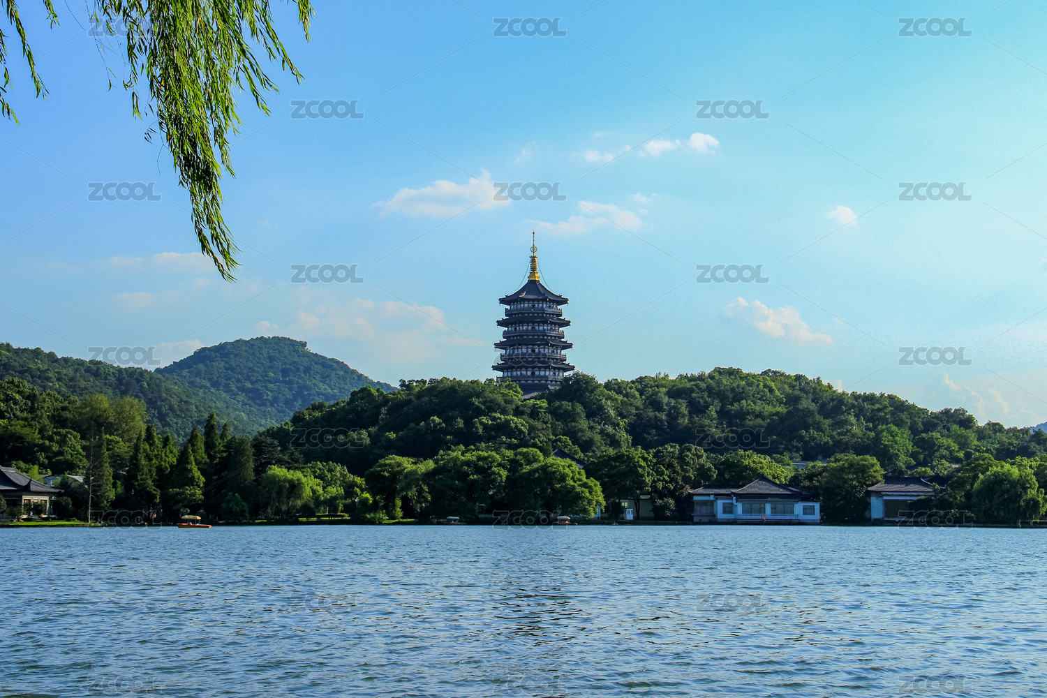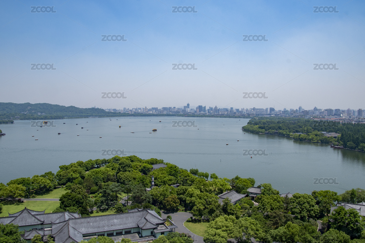 中國浙江省杭州市雷峰塔上西湖風(fēng)光