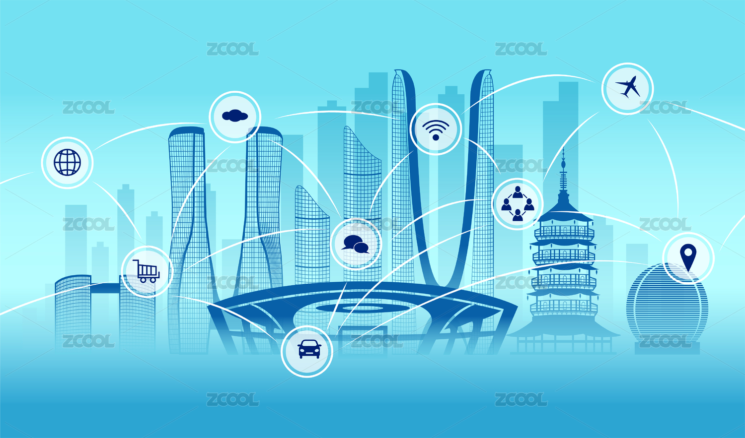 中國浙江省杭州市城市數(shù)據(jù)網(wǎng)絡(luò)空間插畫