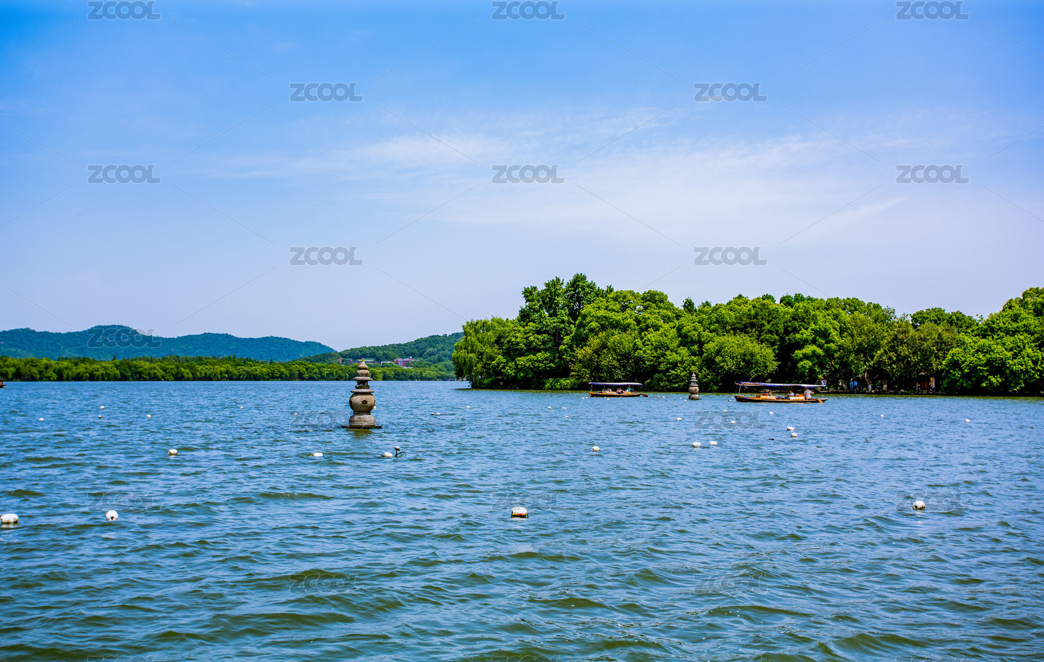 剪紙風(fēng)格中國浙江省杭州市著名景點地標(biāo)西湖插畫