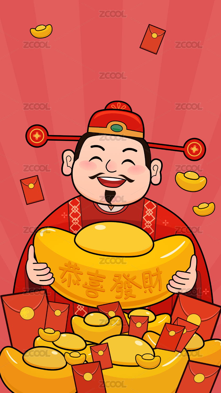打開金山上的金色寶箱金光閃閃紅包雨金幣元寶恭喜發(fā)財紅色喜慶開屏背景