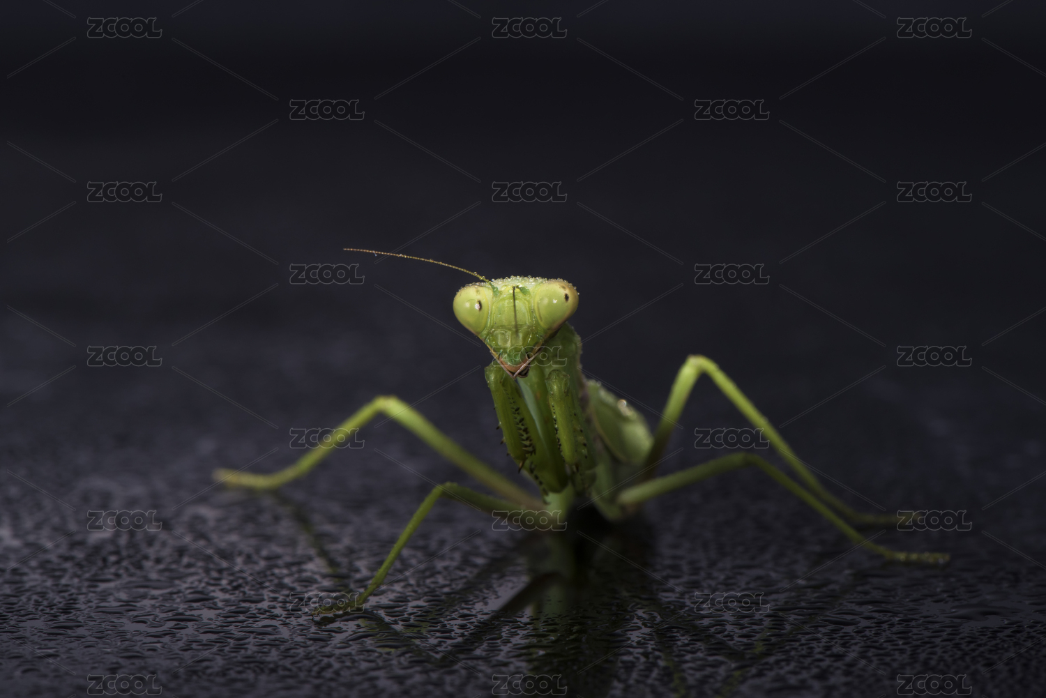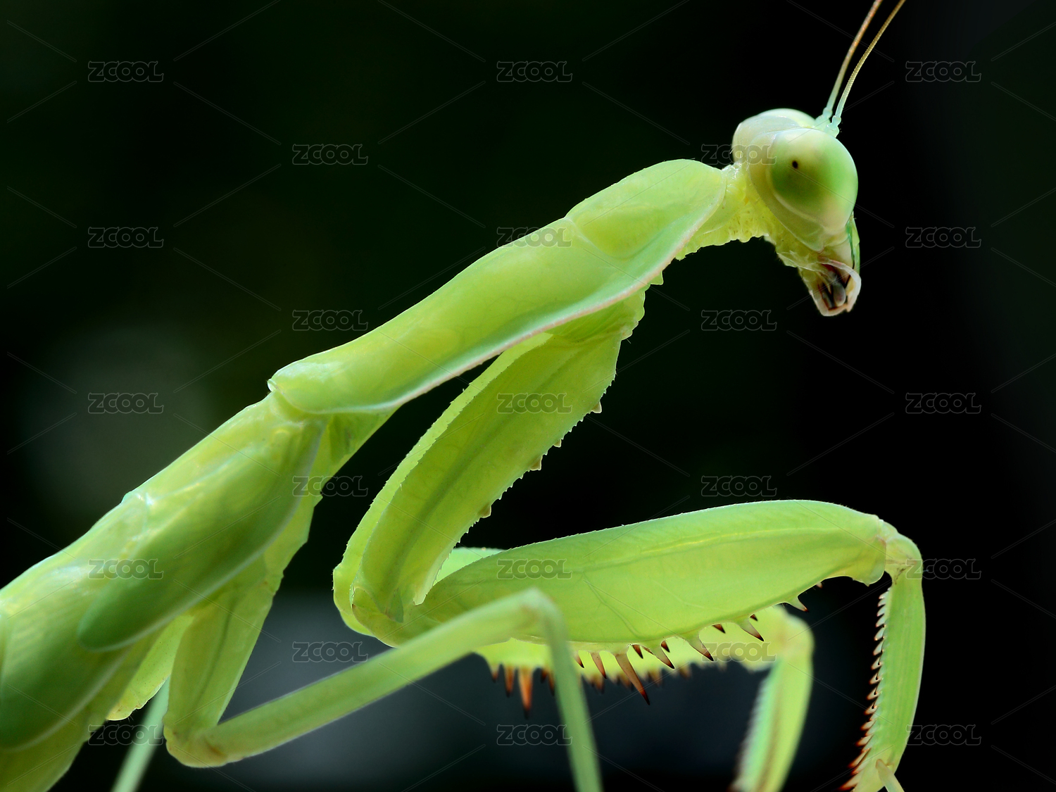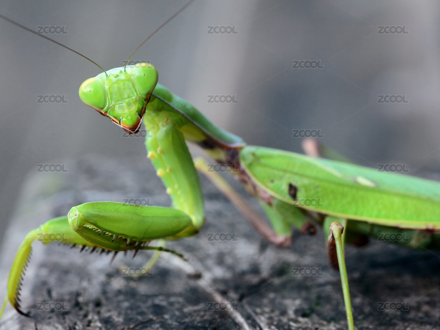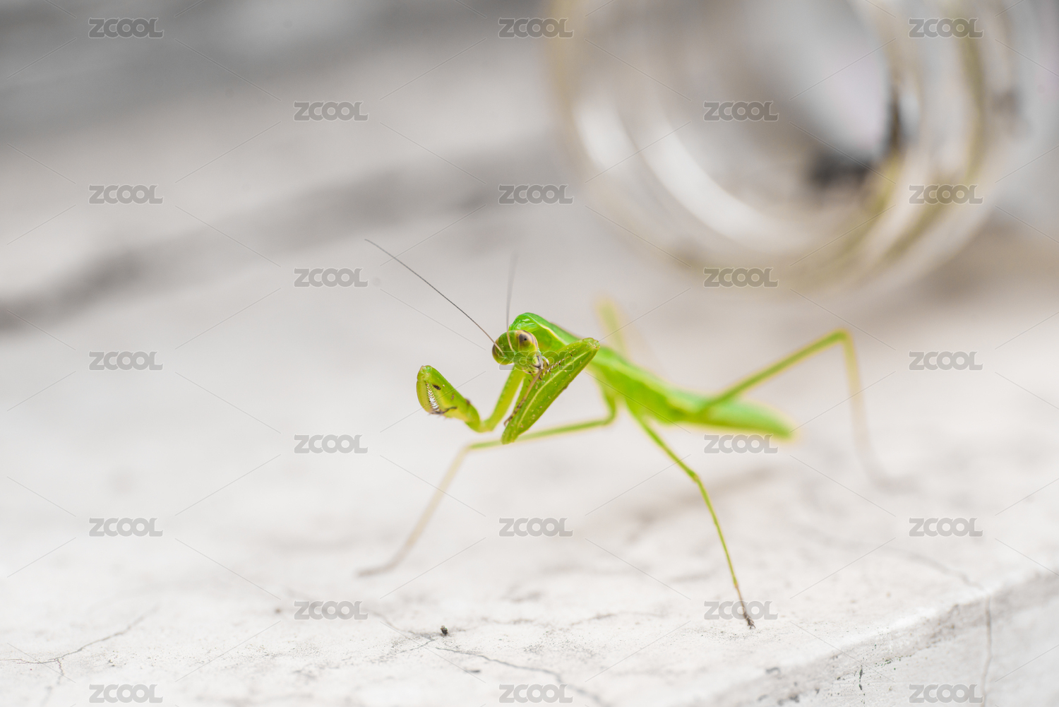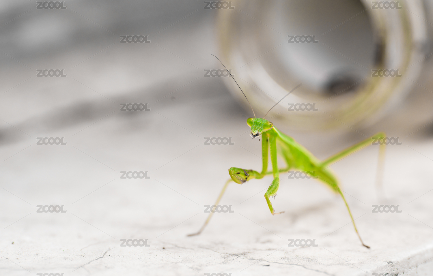 微距拍攝停棲在綠色樹(shù)葉上一臉呆萌的小螳螂