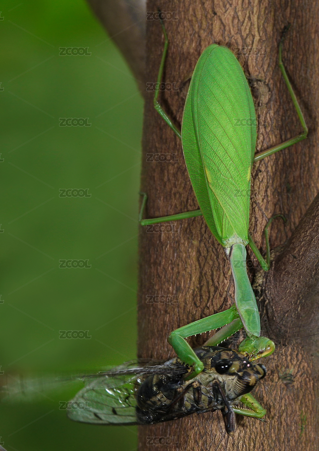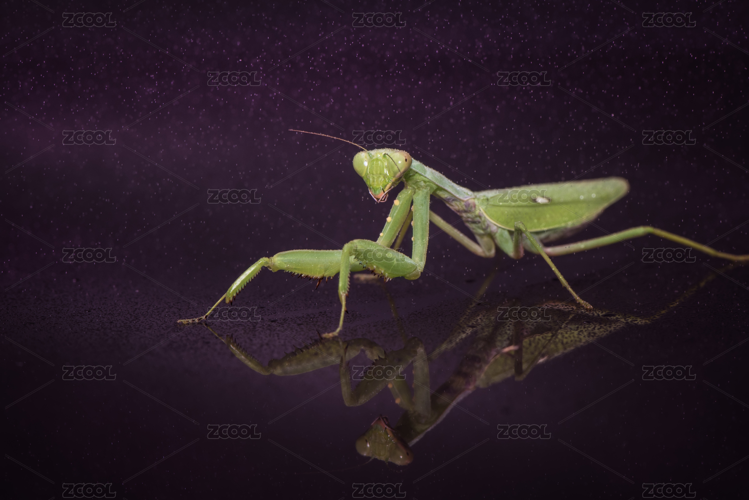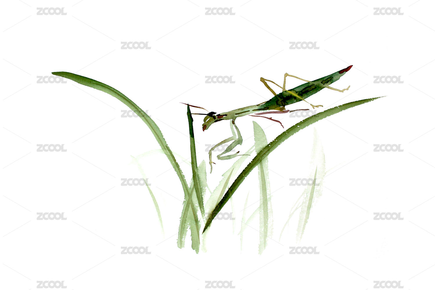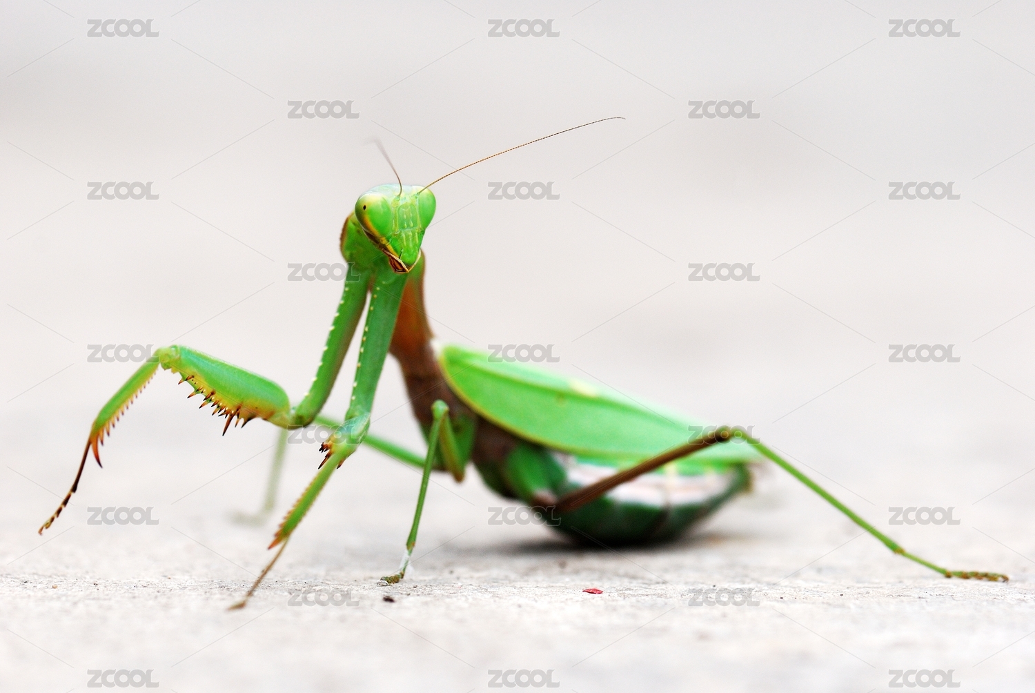 微距拍攝停棲在綠色樹(shù)葉上一臉呆萌的小螳螂