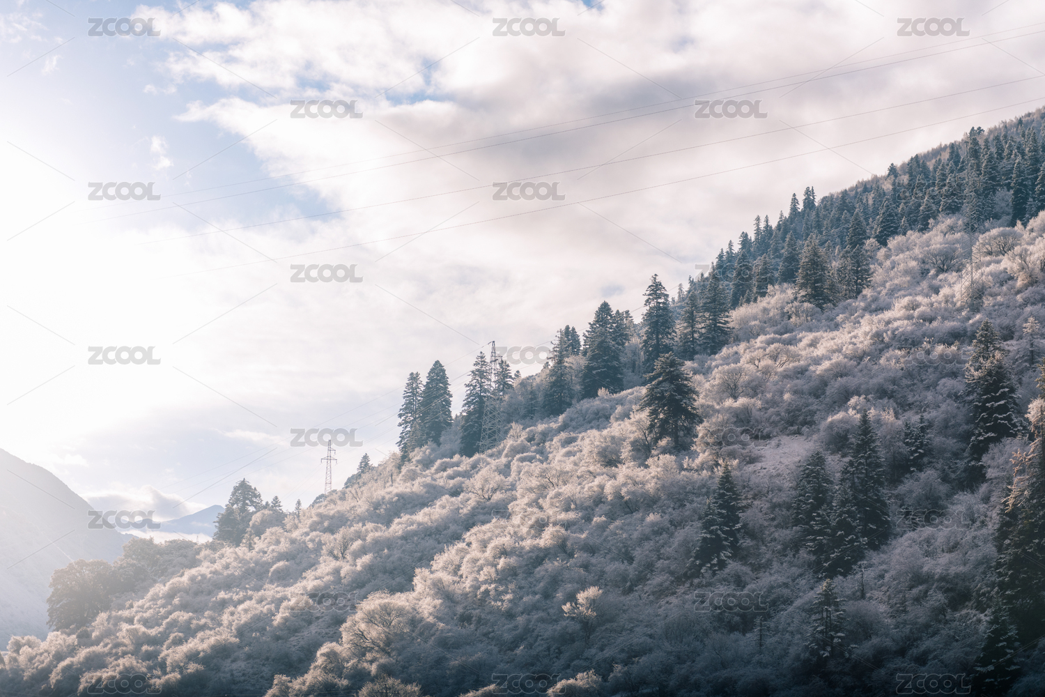 四川川西冬季森林雪景美麗自然風(fēng)光