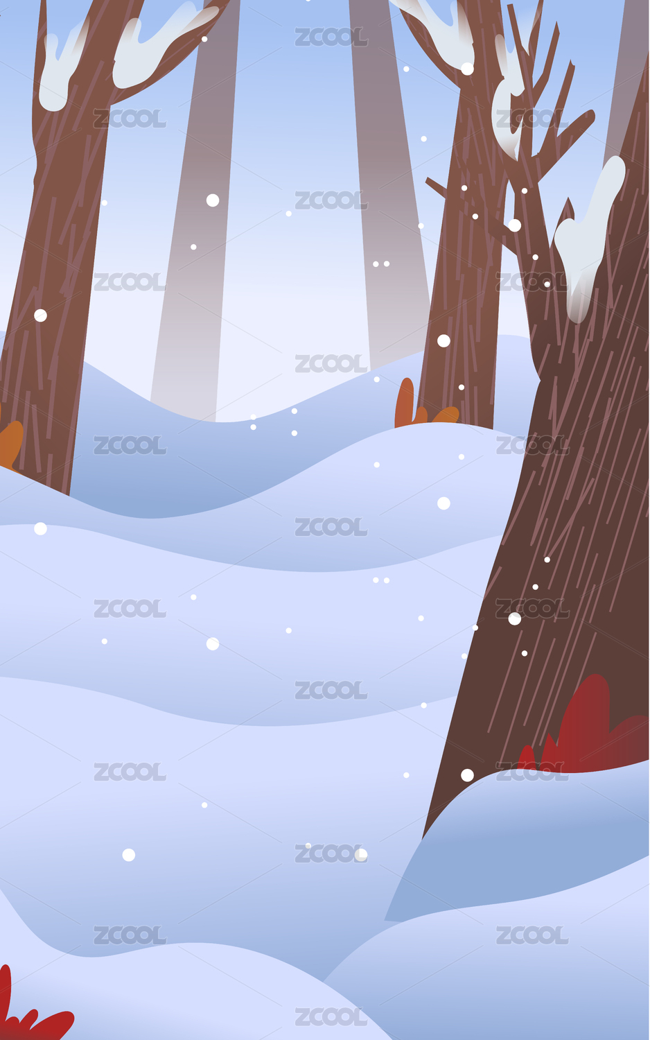 冬天白雪覆蓋的森林雪景插畫海報(bào)背景