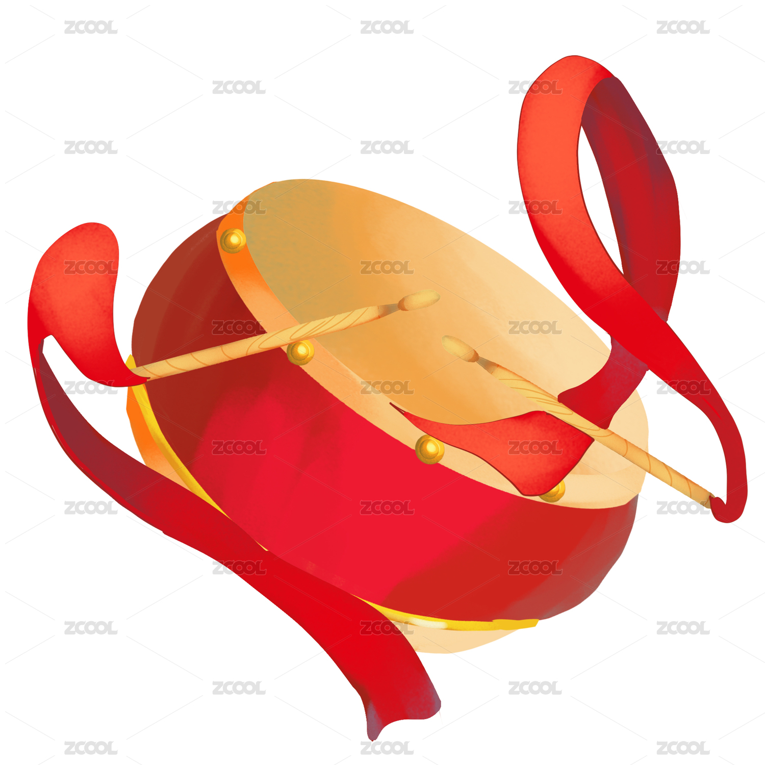 卡通手繪中國風(fēng)紅色大鼓插畫