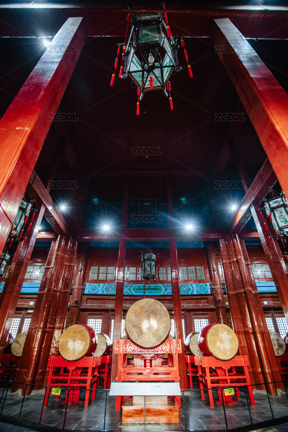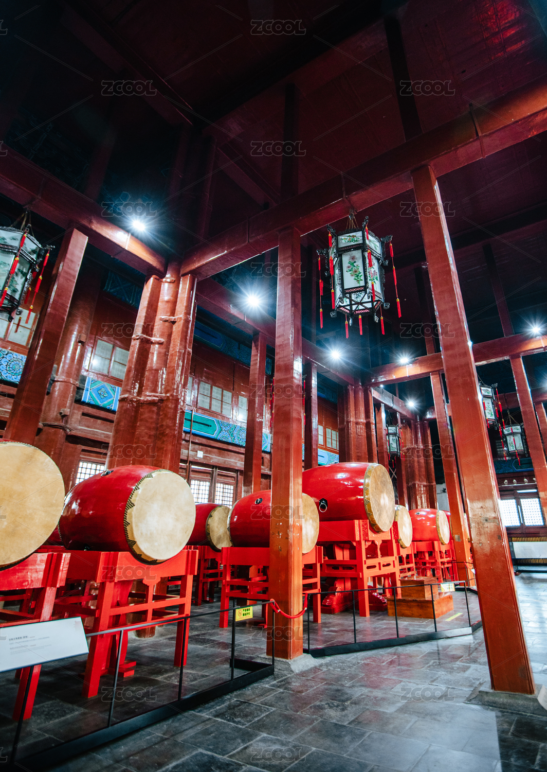 北京鼓樓建筑內(nèi)部一排中國鼓