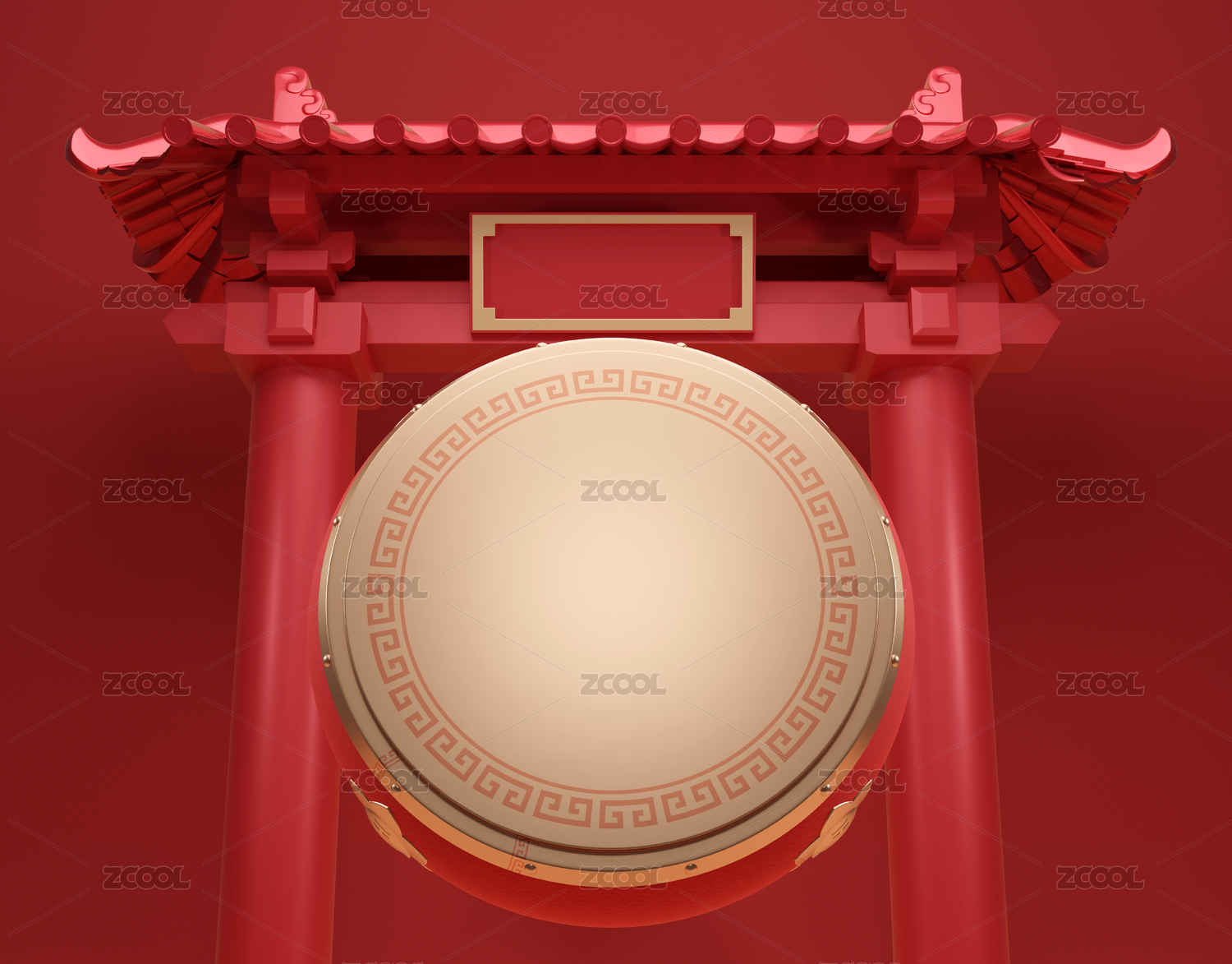 中國古典喜慶樂器中國鼓勵3D渲染設(shè)計