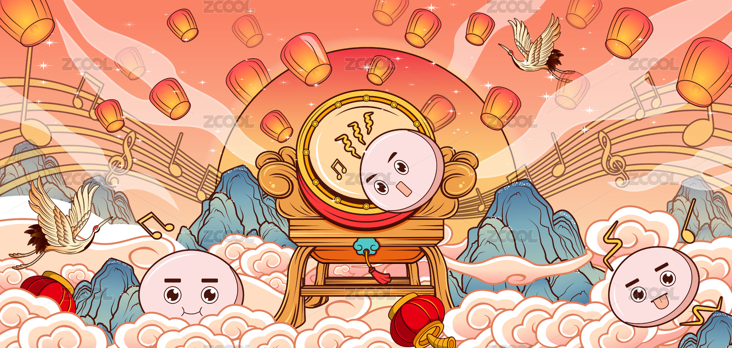 湯圓打鼓的元宵節(jié)主題插畫