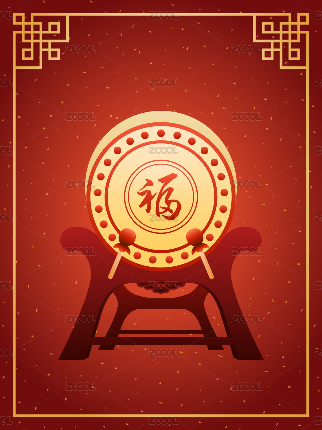 春節(jié)新年國潮插畫中式邊框背景傳統(tǒng)鼓樂
