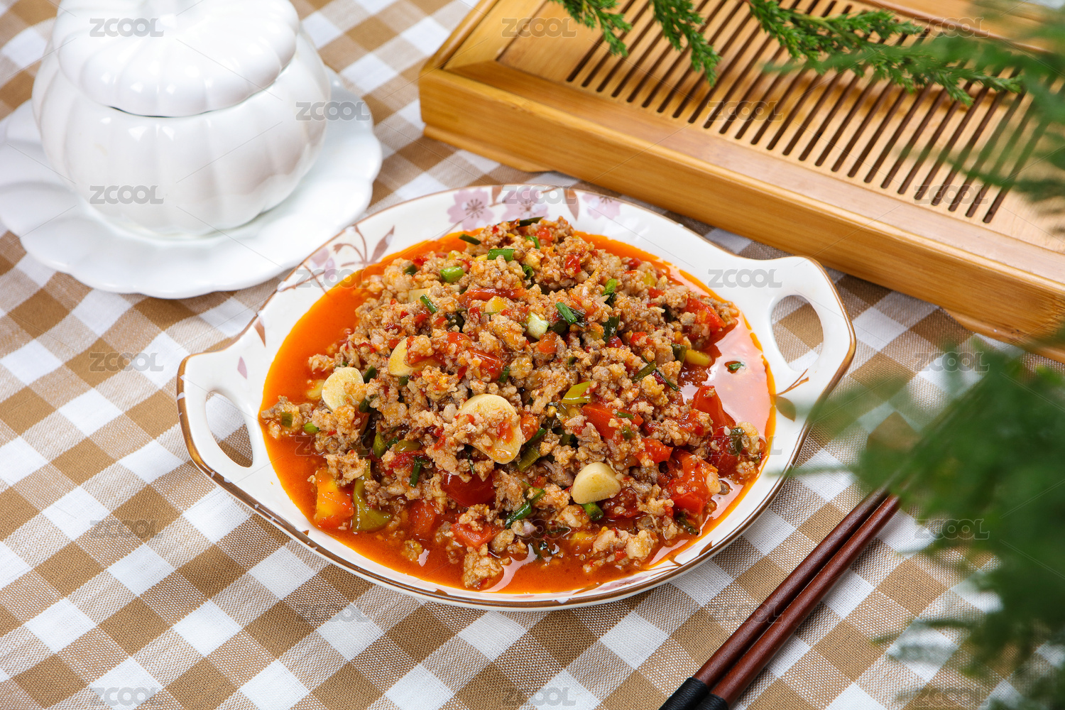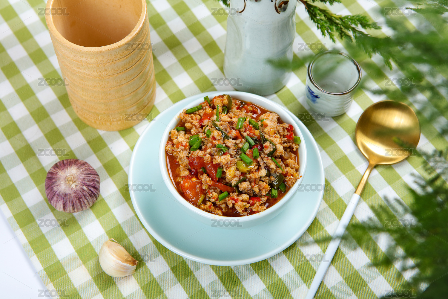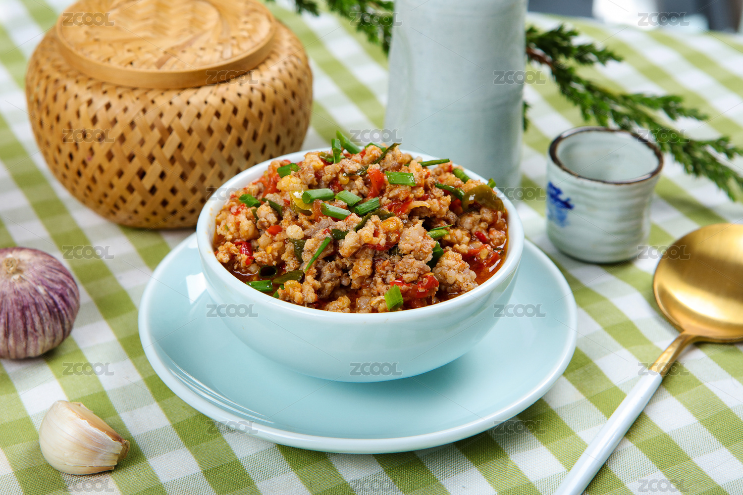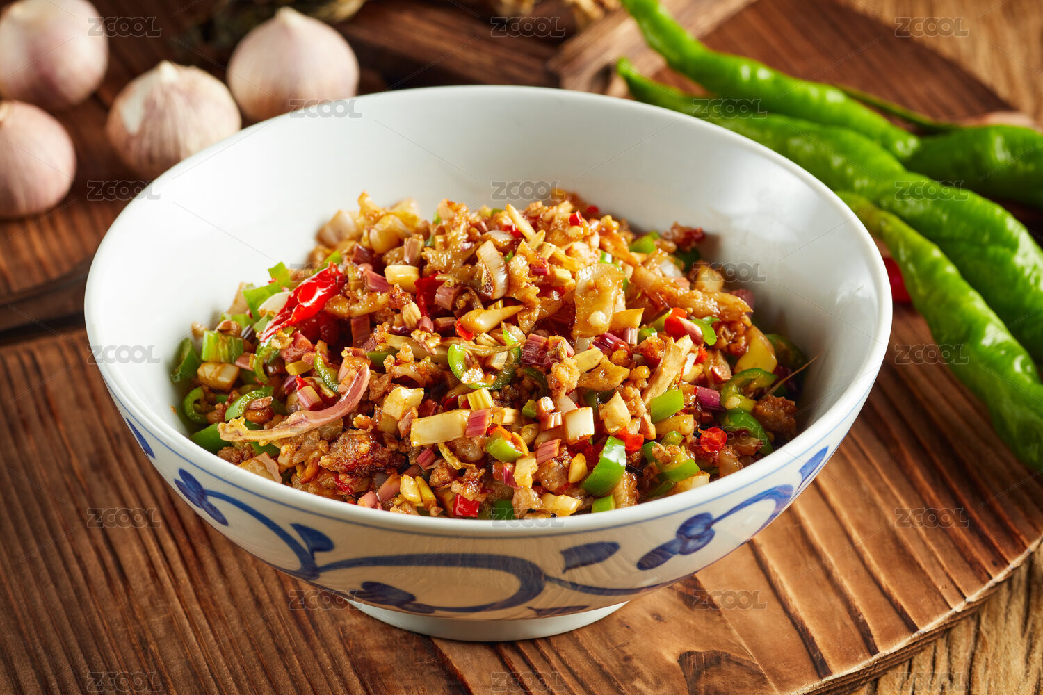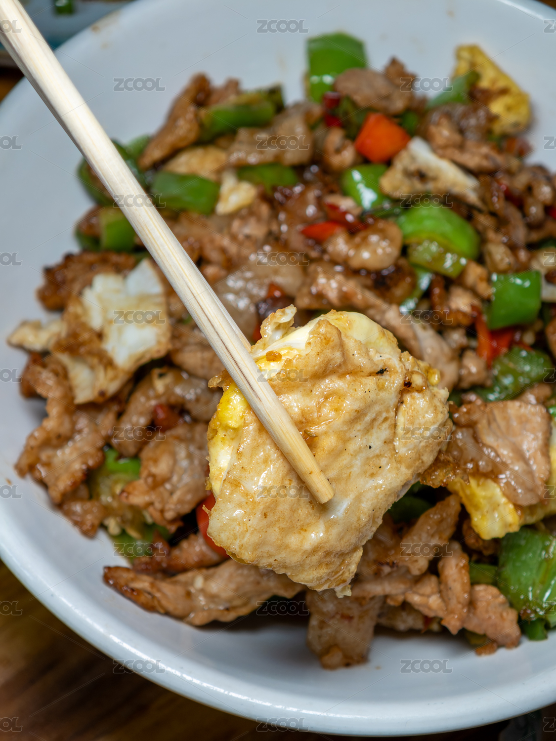 香辣青椒雞蛋炒肉片雞蛋和米飯