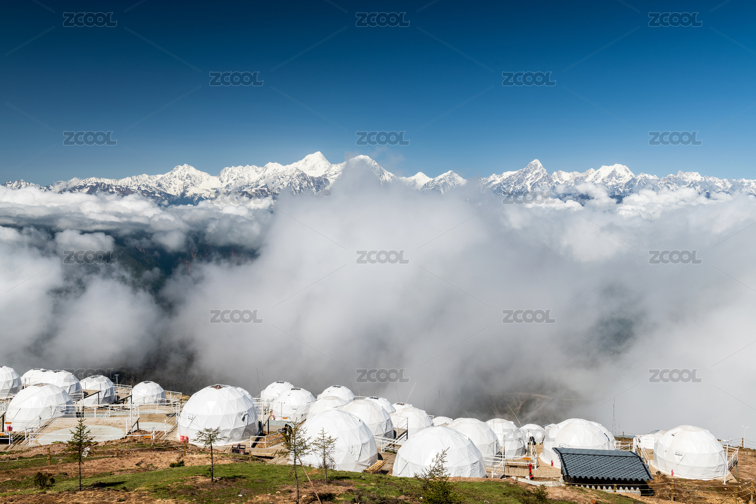 中國四川省雅安市滎經(jīng)縣牛背山帳篷營地及云