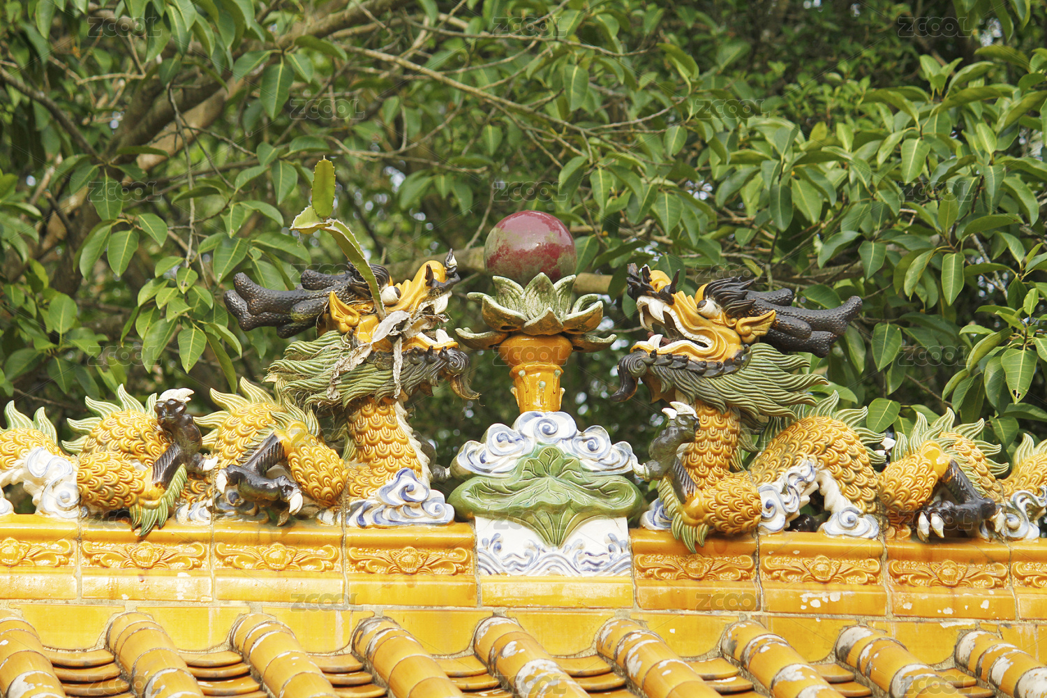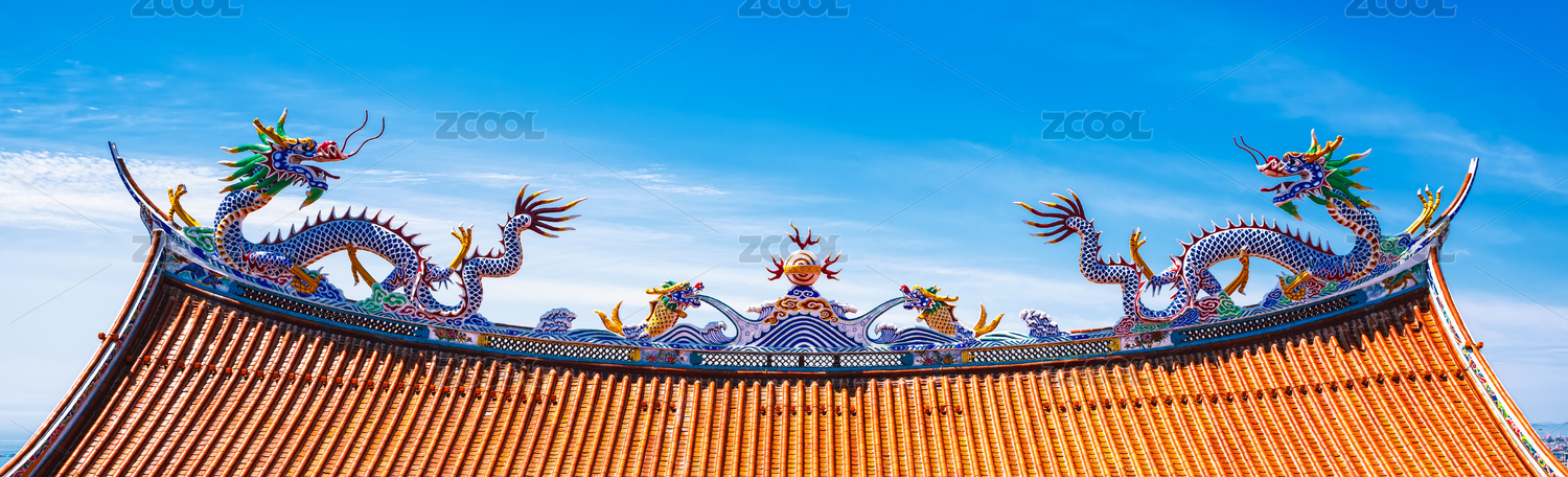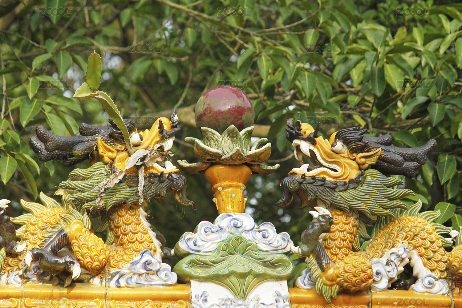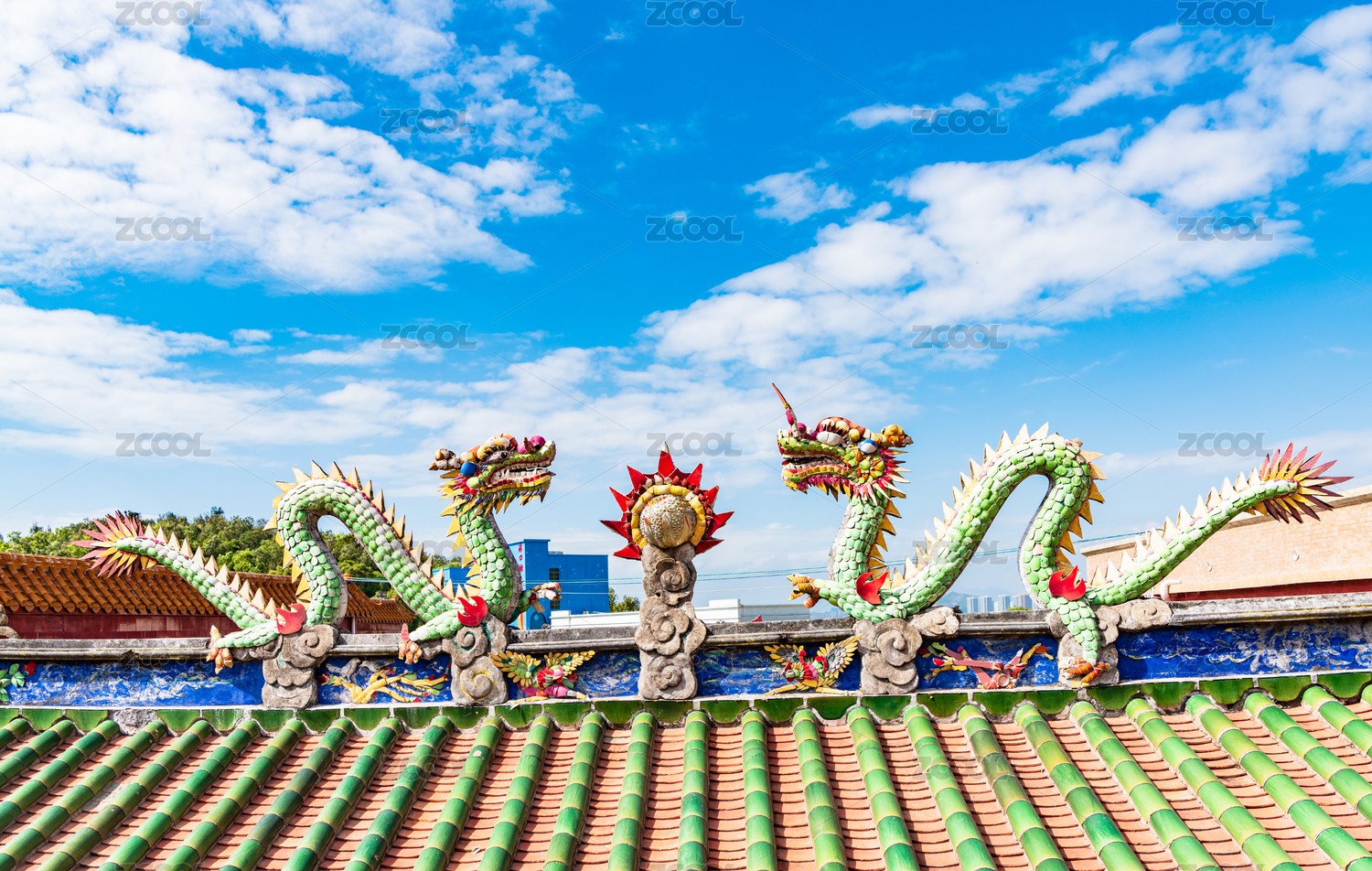 中國(guó)福州閩派風(fēng)格建筑屋頂雙龍戲珠形象