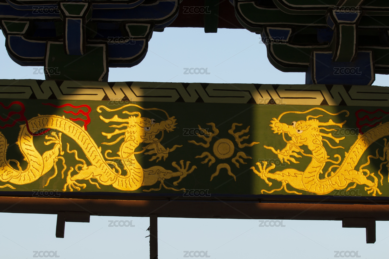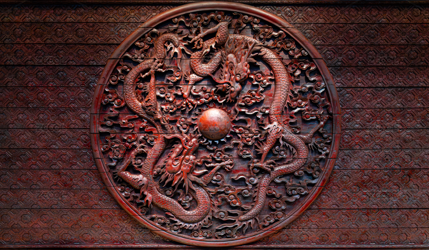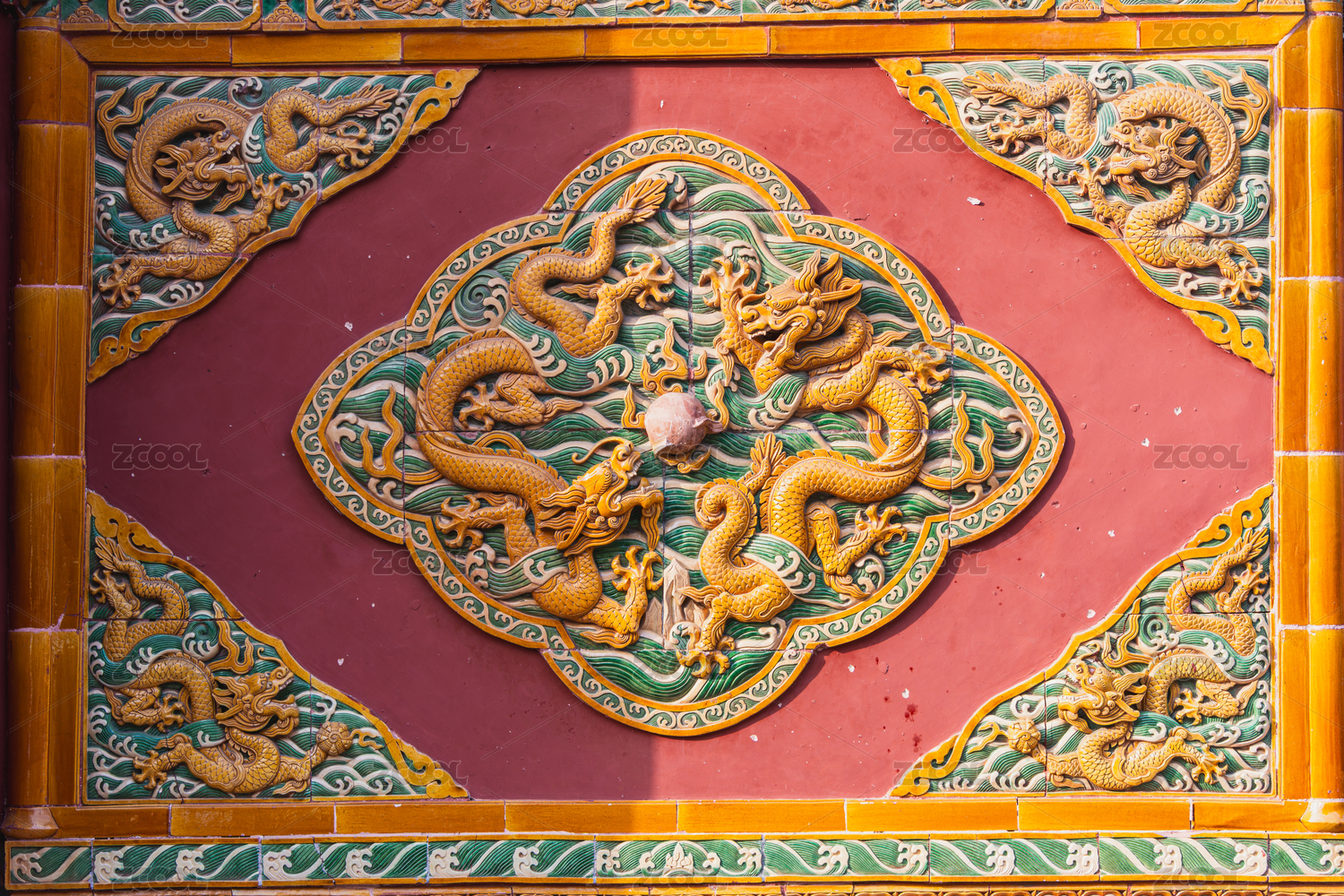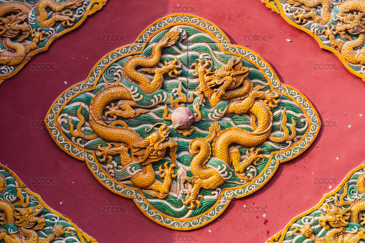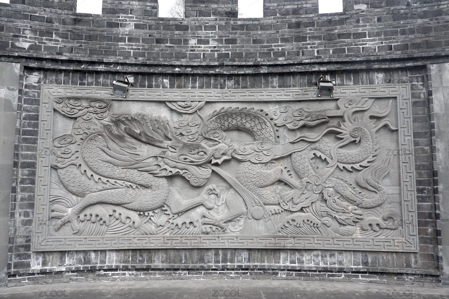 中國(guó)四川成都洛帶金龍長(zhǎng)城雙龍戲珠浮雕