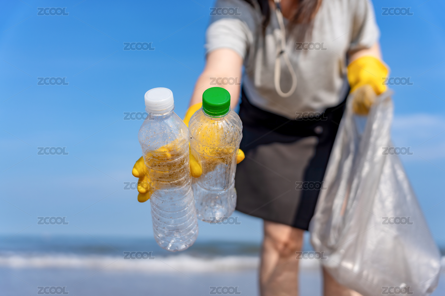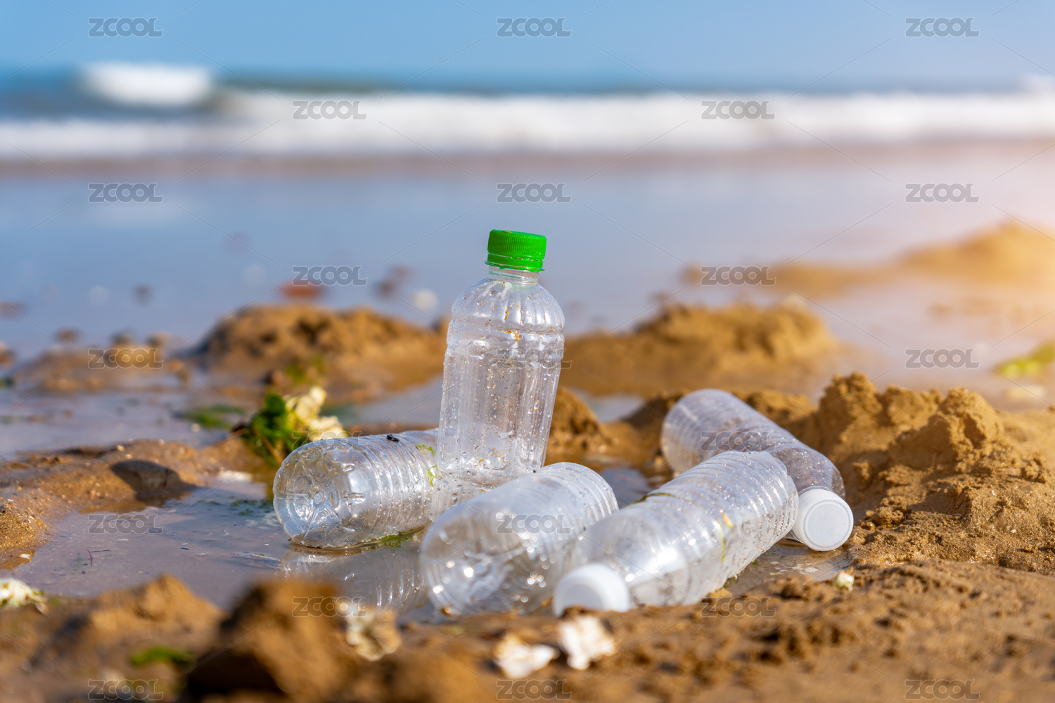 海灘上的塑料瓶垃圾
