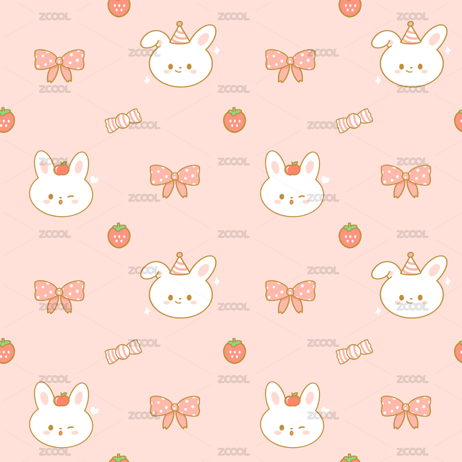 粉紅兔兔小熊滿印