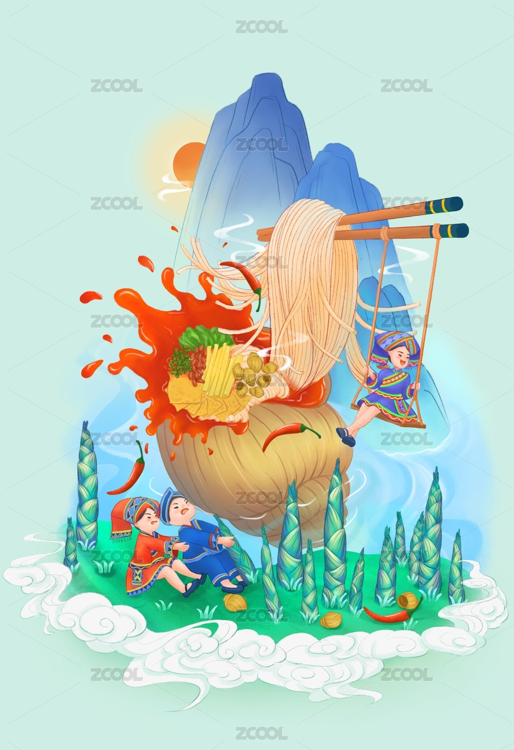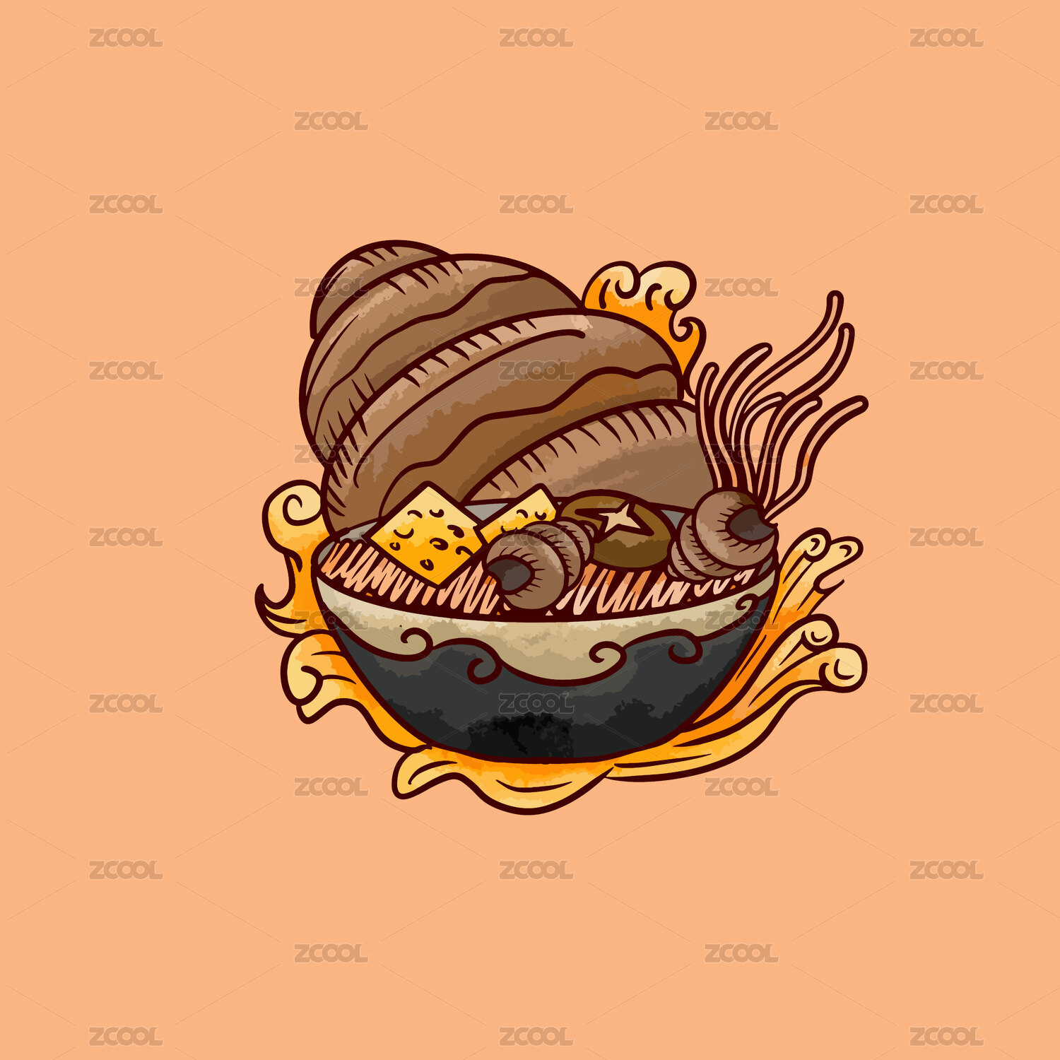 手繪卡通中國柳州螺螄粉插畫設(shè)計