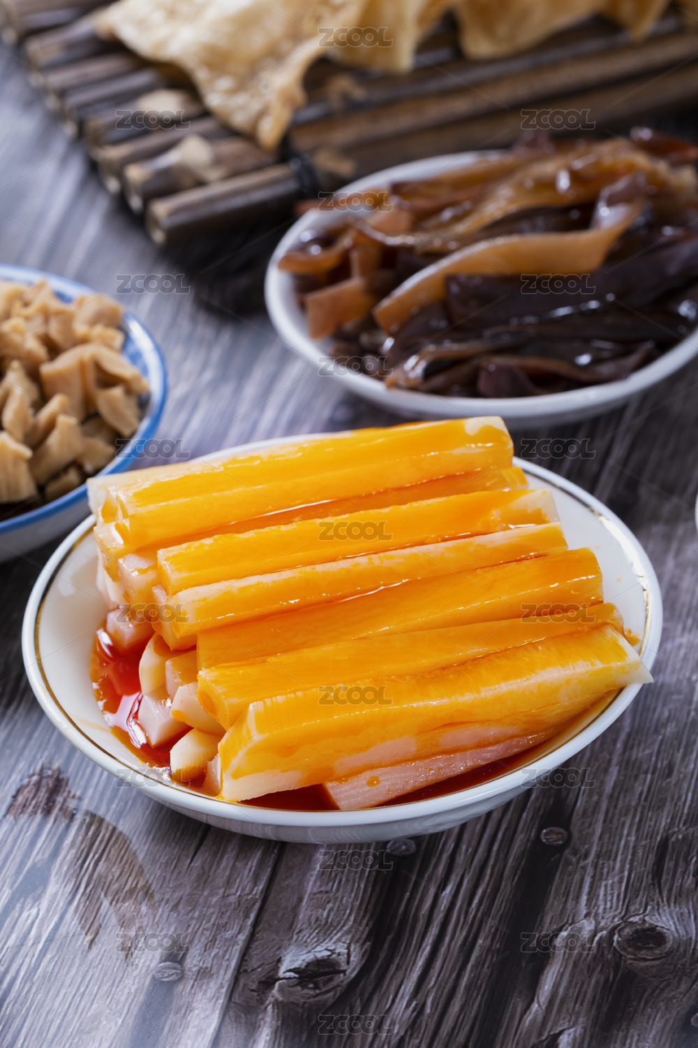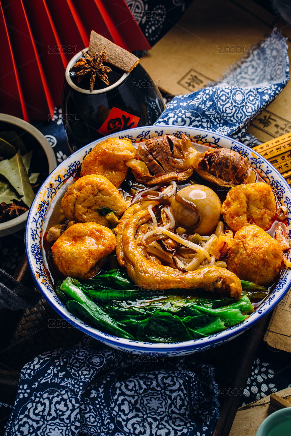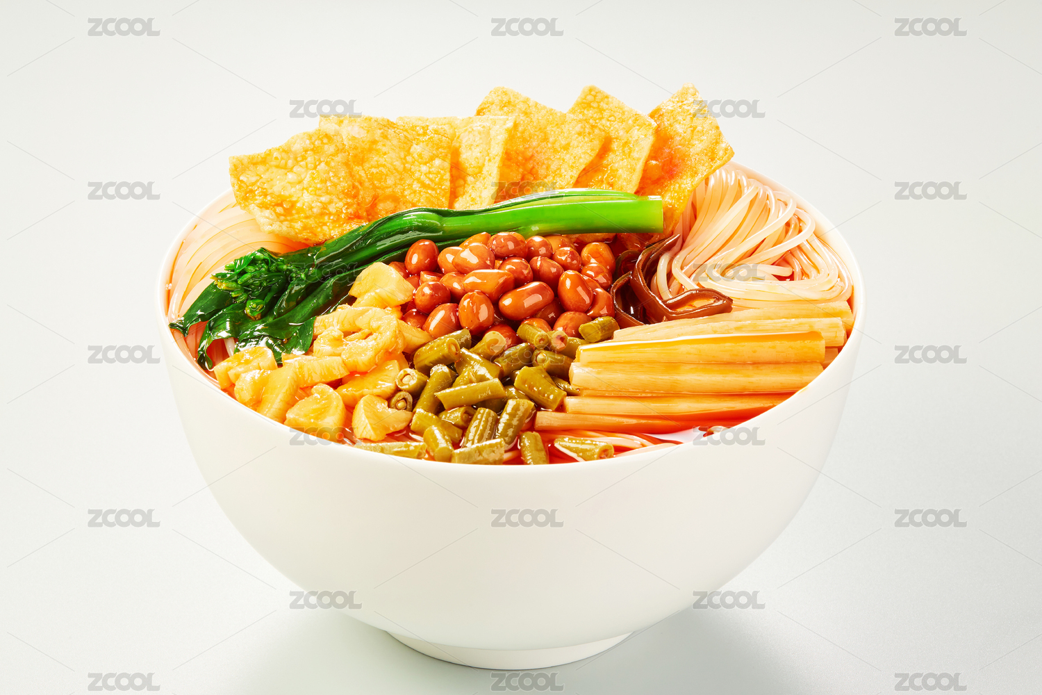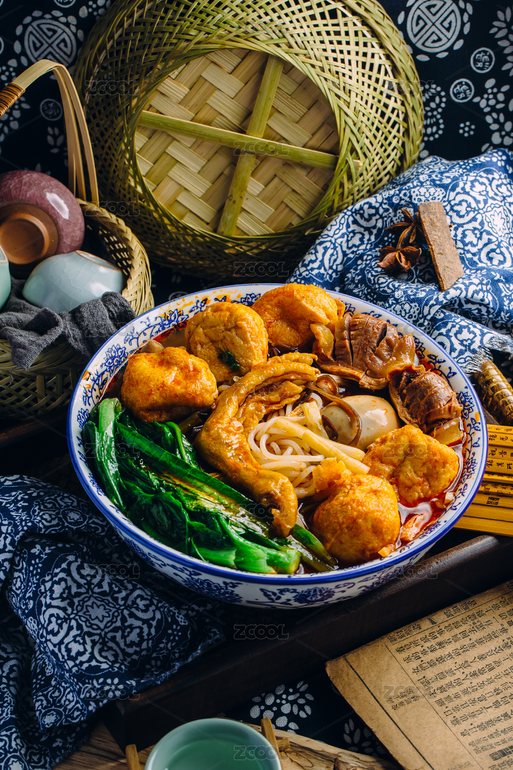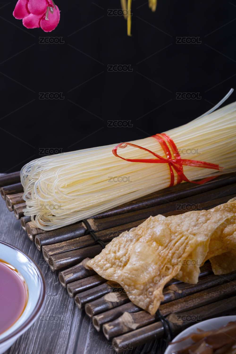 美味的廣西柳州螺螄粉,在木質(zhì)的桌面背景