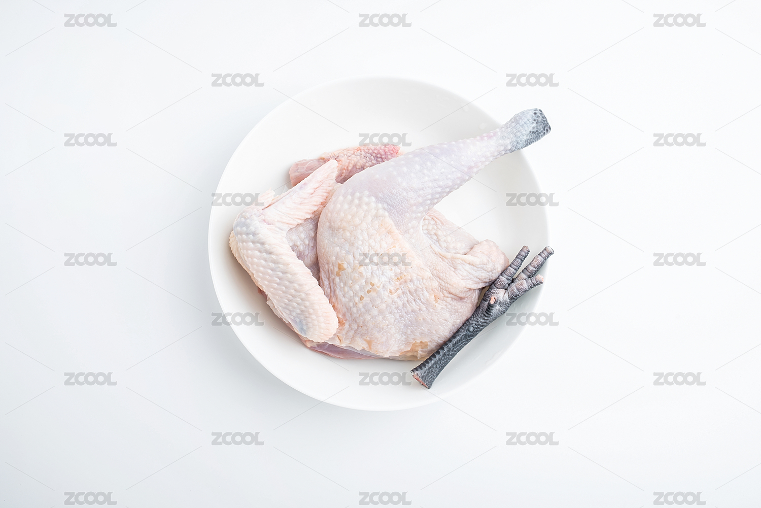 一盤(pán)子新鮮雞肉大雞腿美食的白底圖
