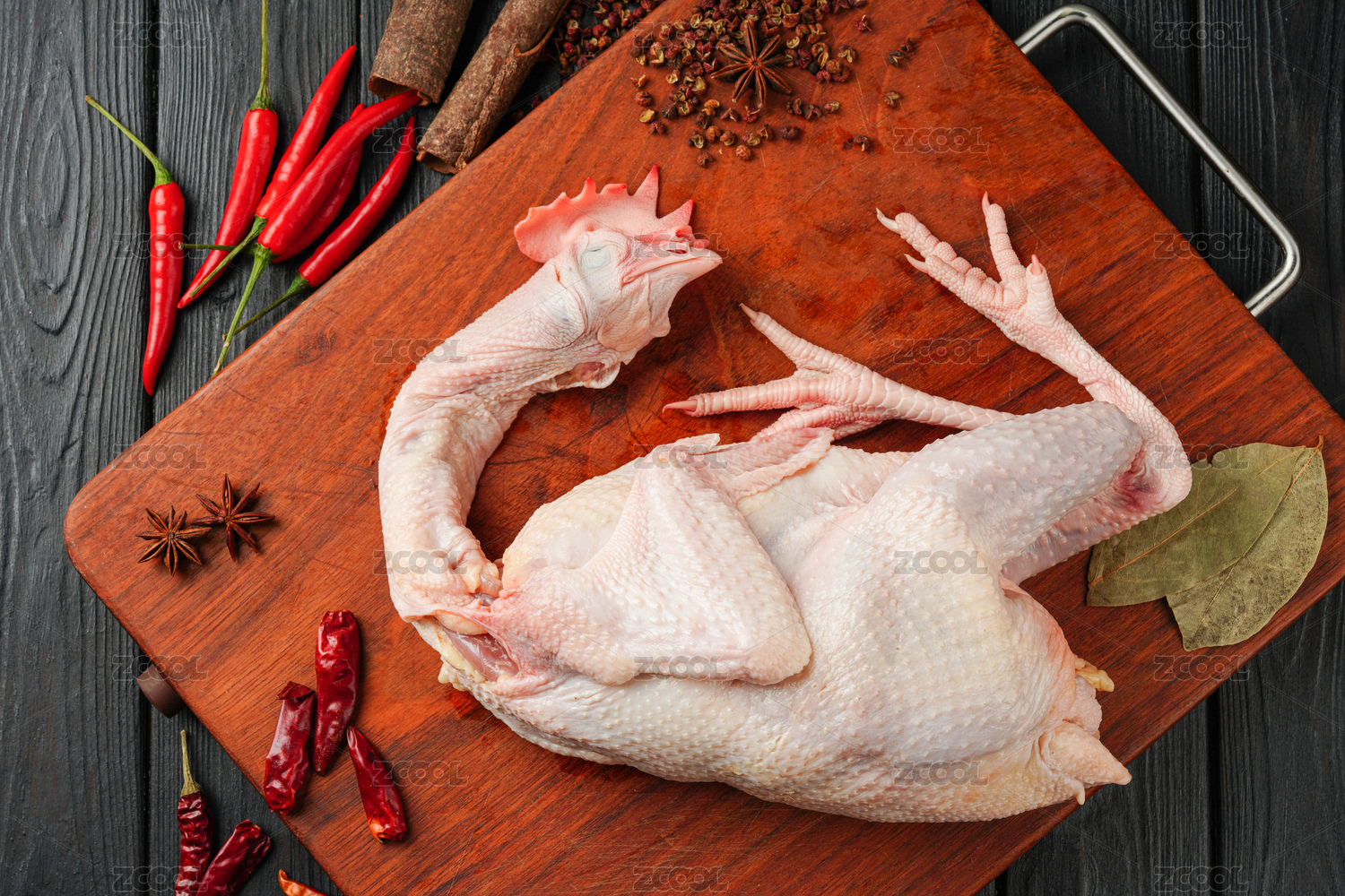 木桌子上一盤(pán)子的新鮮雞肉大雞腿美食
