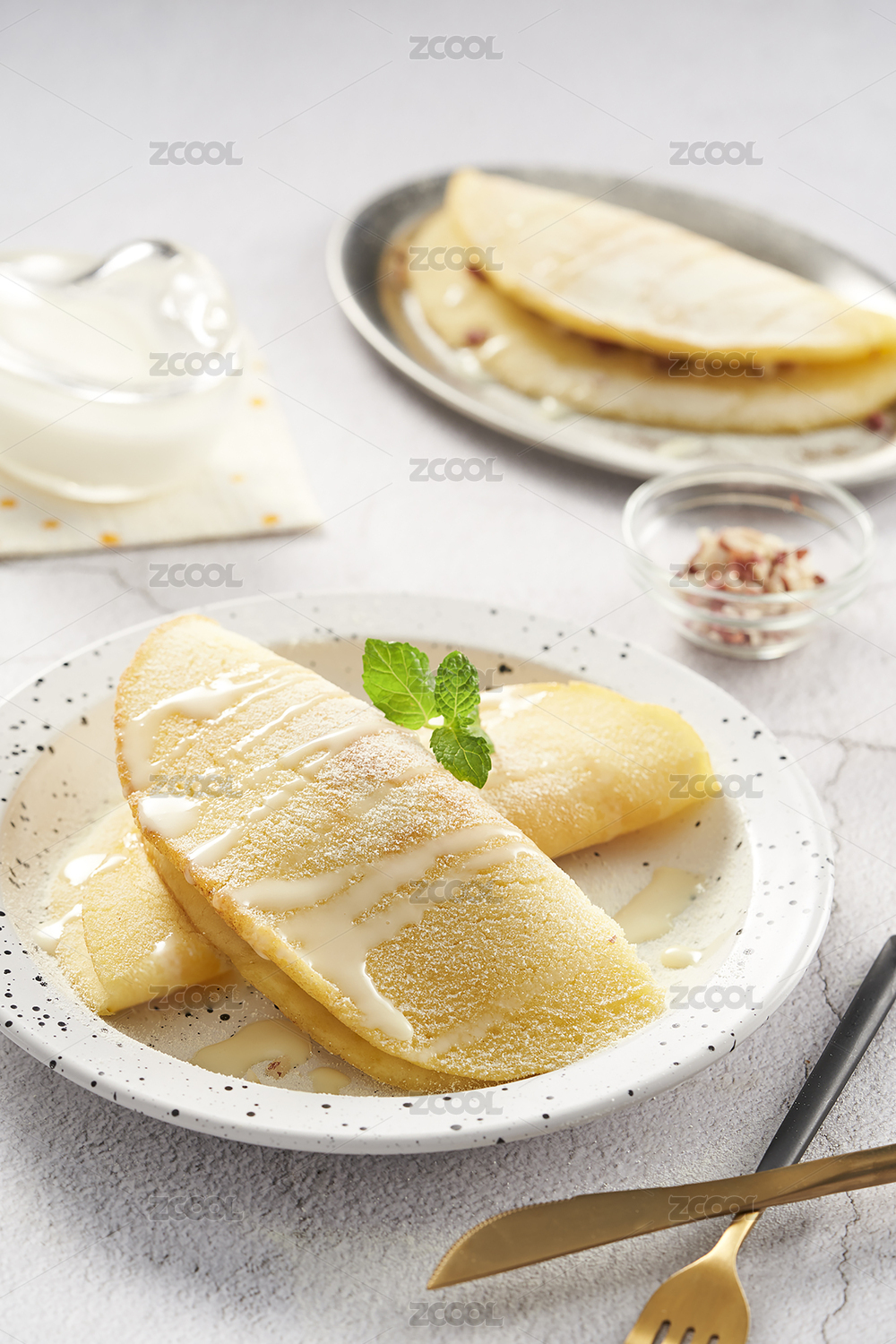 斑點盤子里的可麗餅餅皮