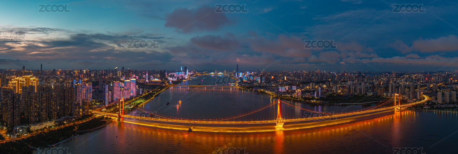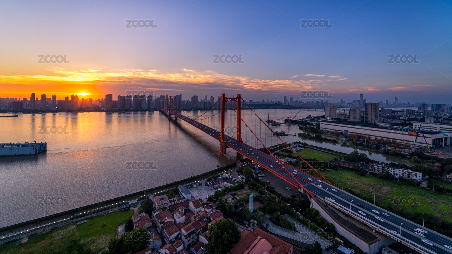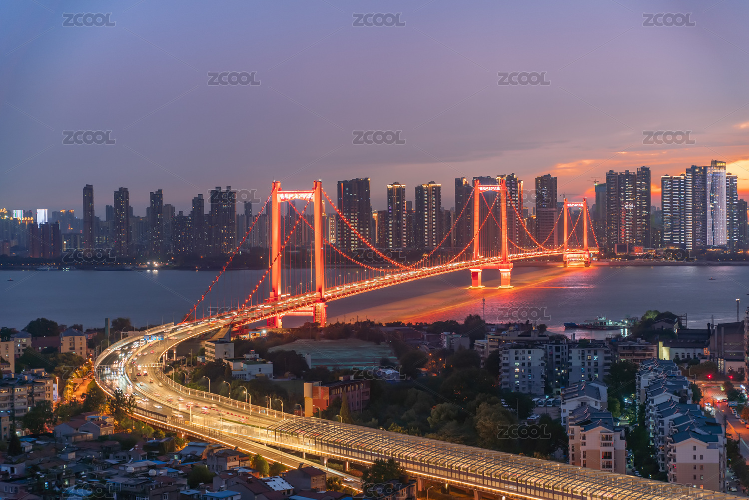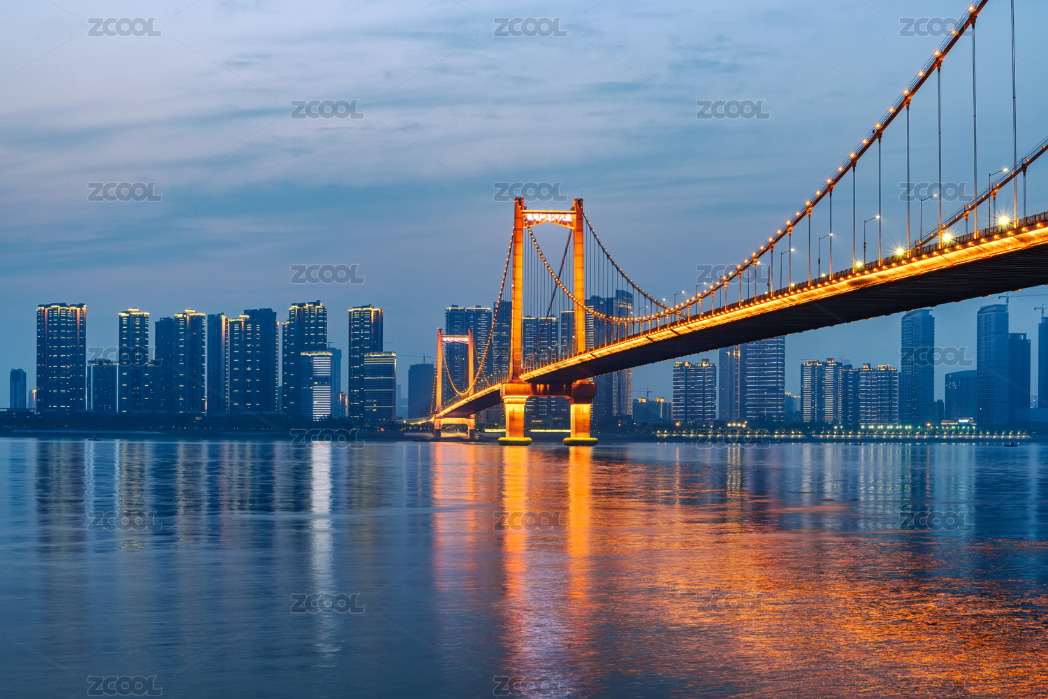 中國(guó)湖北武漢鸚鵡洲長(zhǎng)江大橋黃昏風(fēng)光