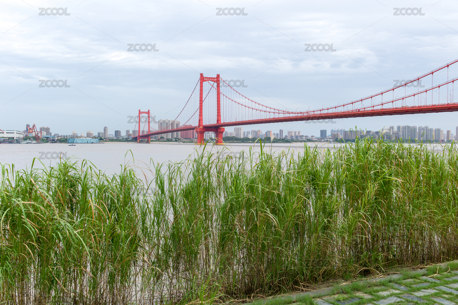 中國(guó)武漢鸚鵡洲長(zhǎng)江大橋和蘆葦