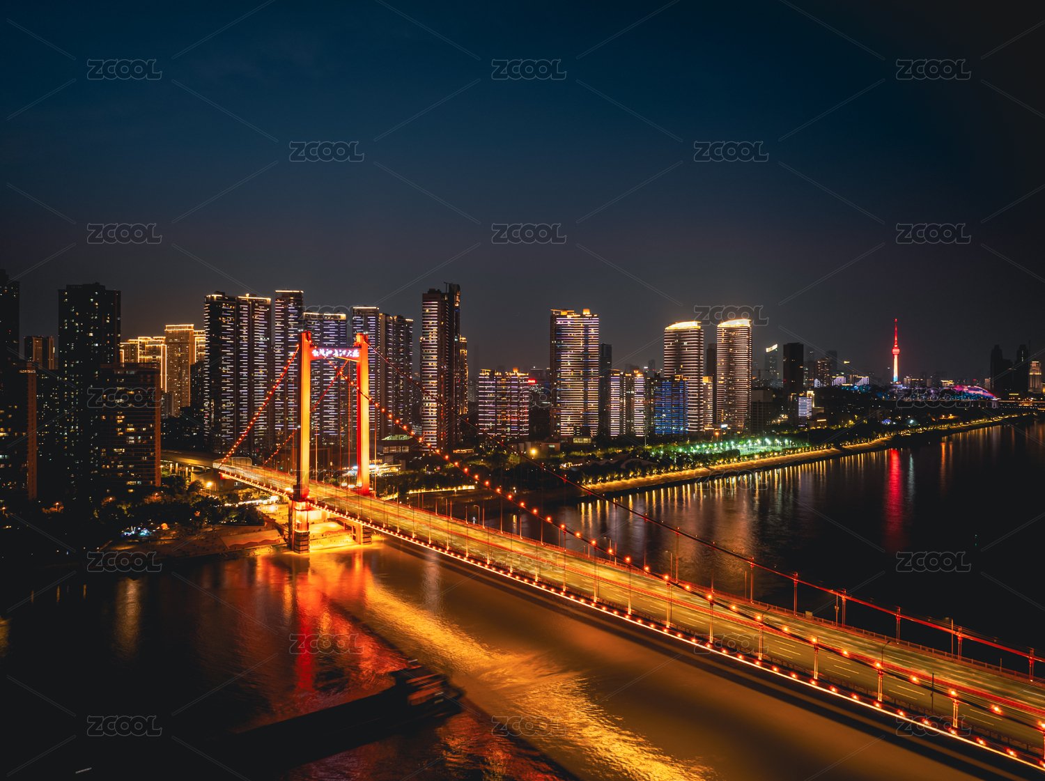 中國(guó)湖北武漢鸚鵡洲長(zhǎng)江大橋夜景