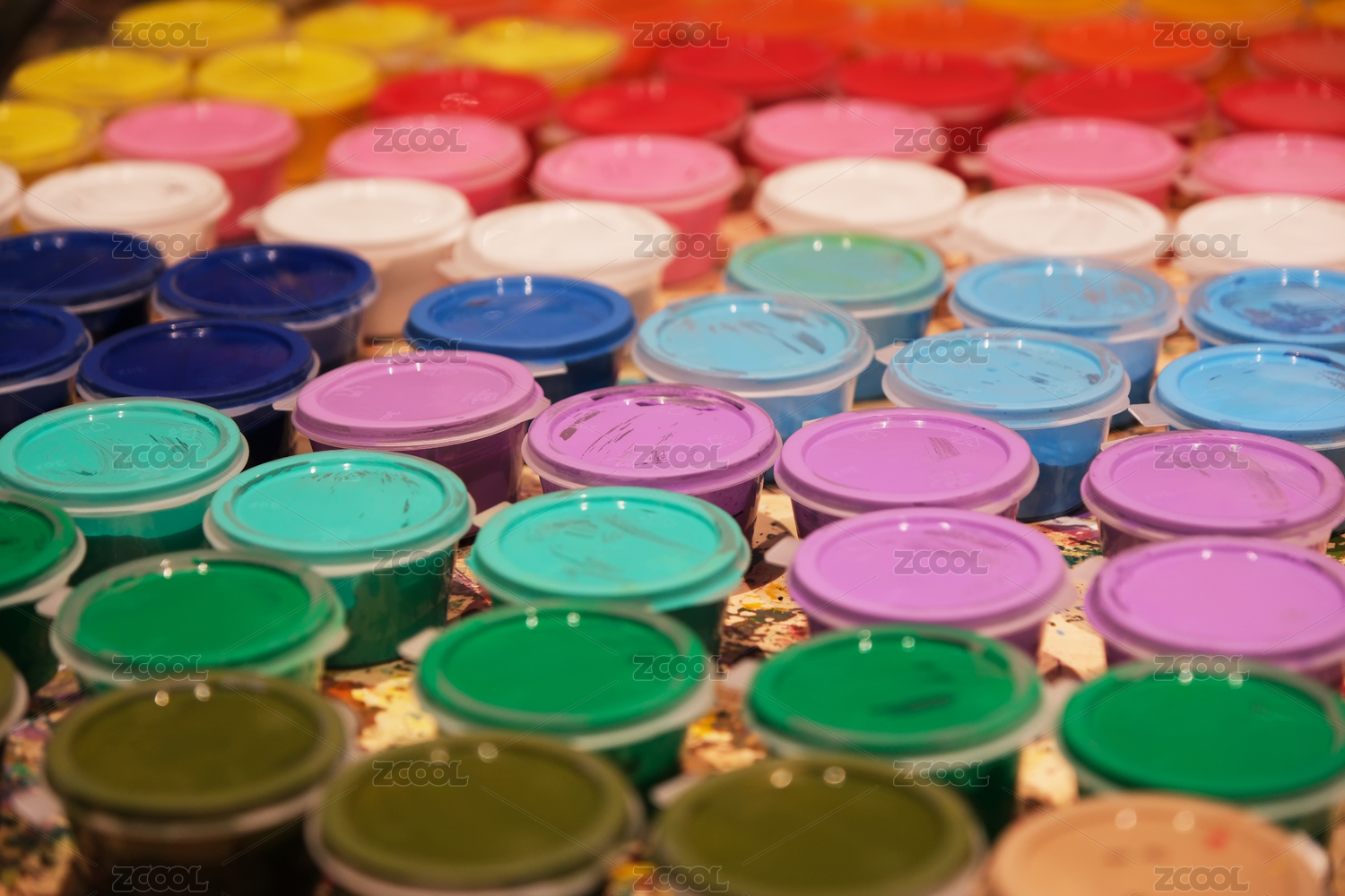 五彩繽紛的顏料杯