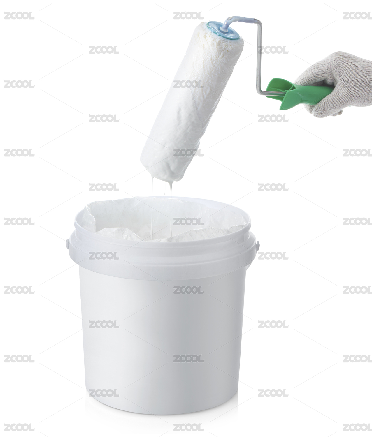 滾筒上正在滴下的白色涂料