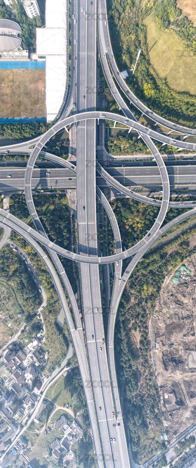 中國(guó)浙江杭州彩虹立交橋豎屏全景圖航拍