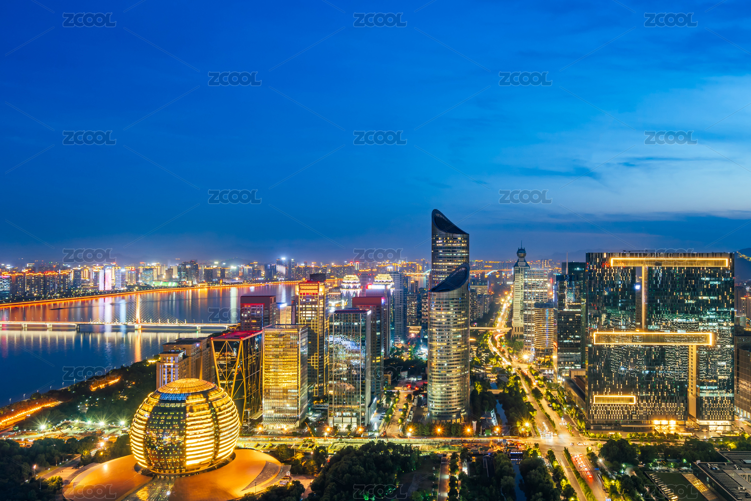 中國(guó)浙江杭州錢江新城黃昏城市風(fēng)光