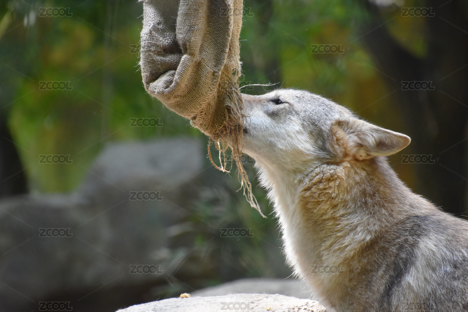 咬著布袋子的灰狼