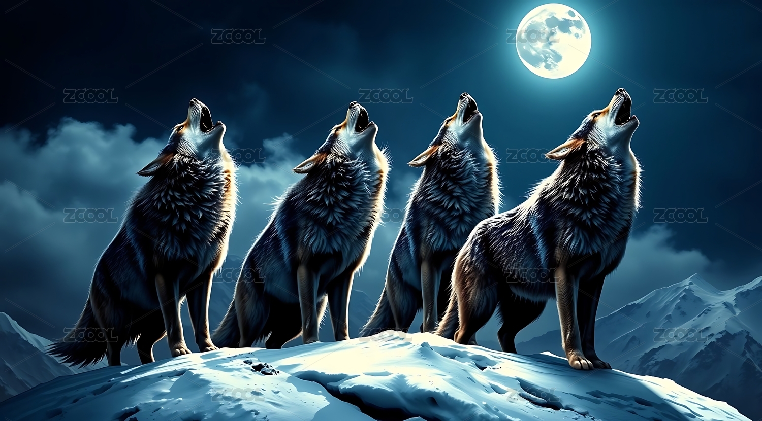 雪峰下群狼月夜長嘯