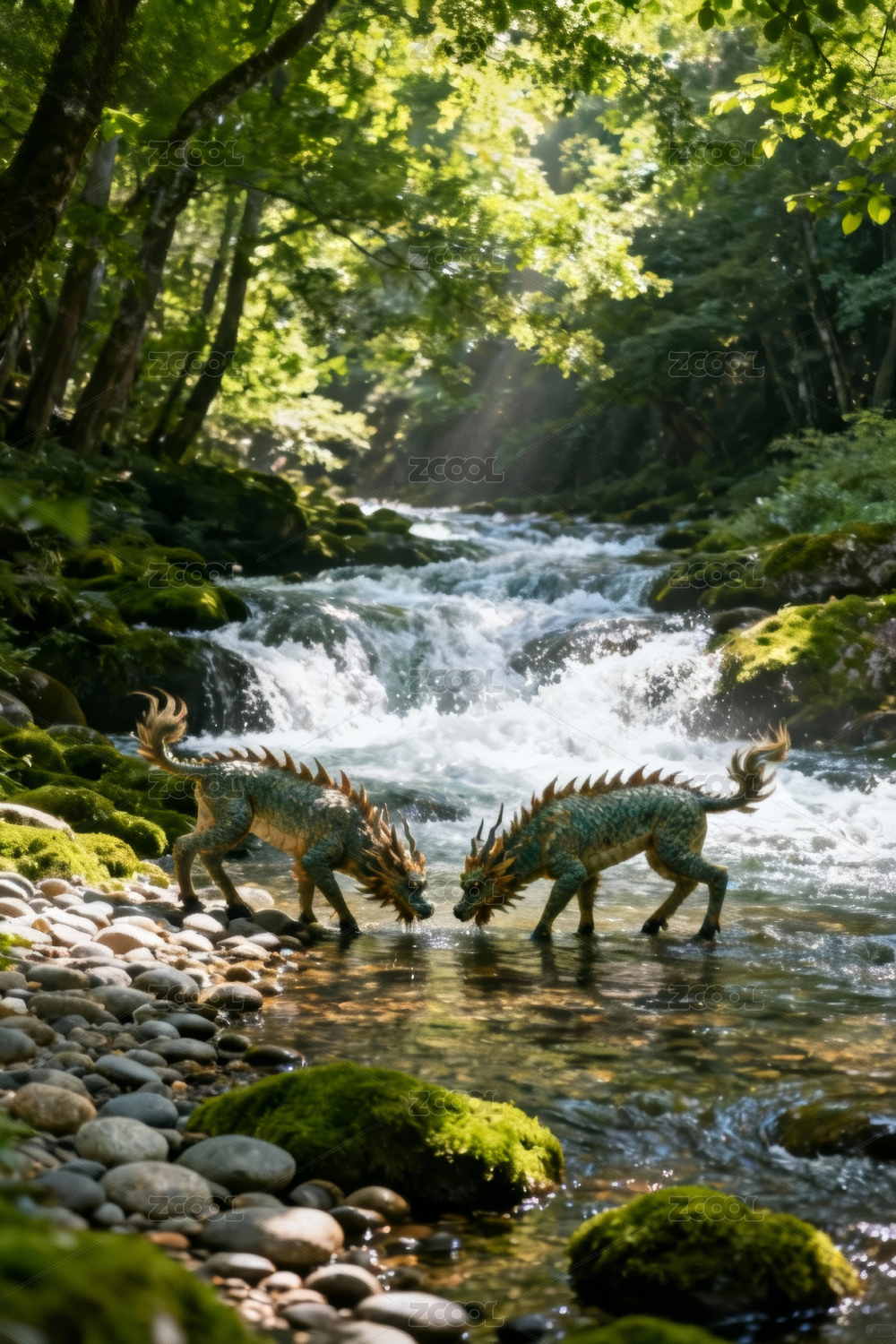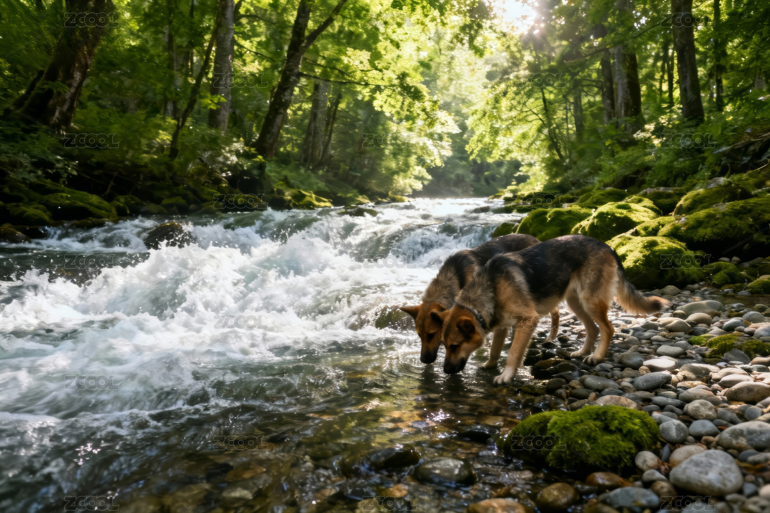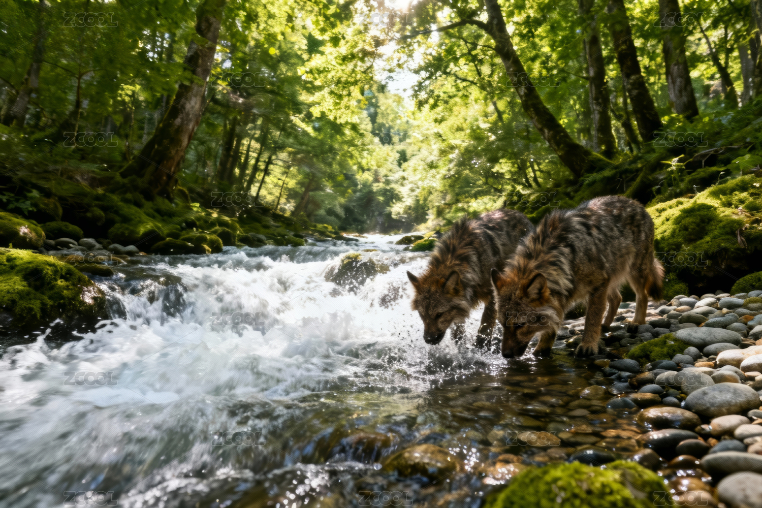 森林溪流中的狼群