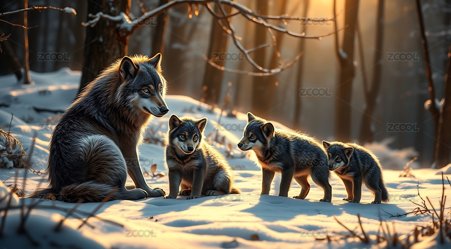 雪地里的狼群