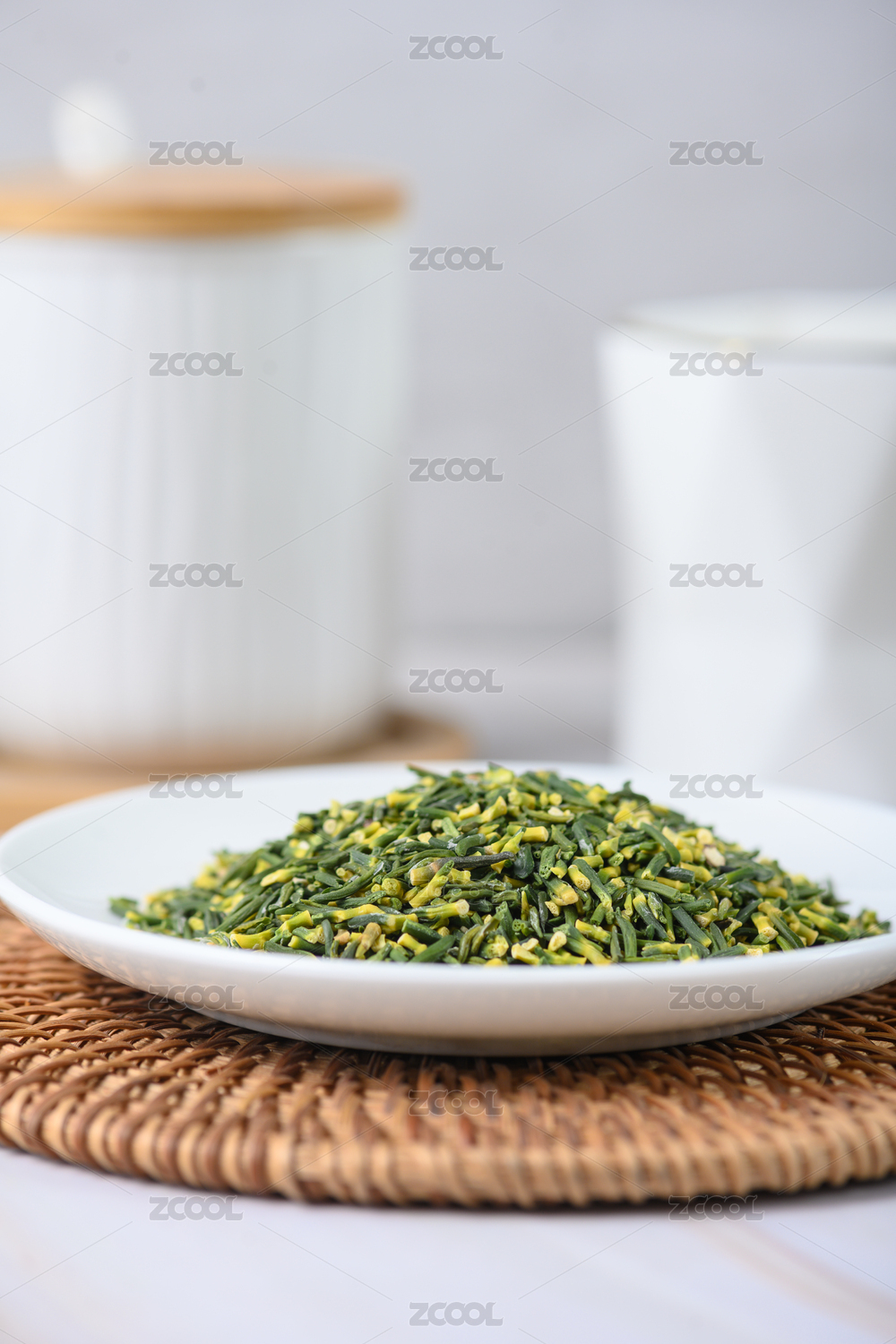 白色桌面上有一碟蓮子心