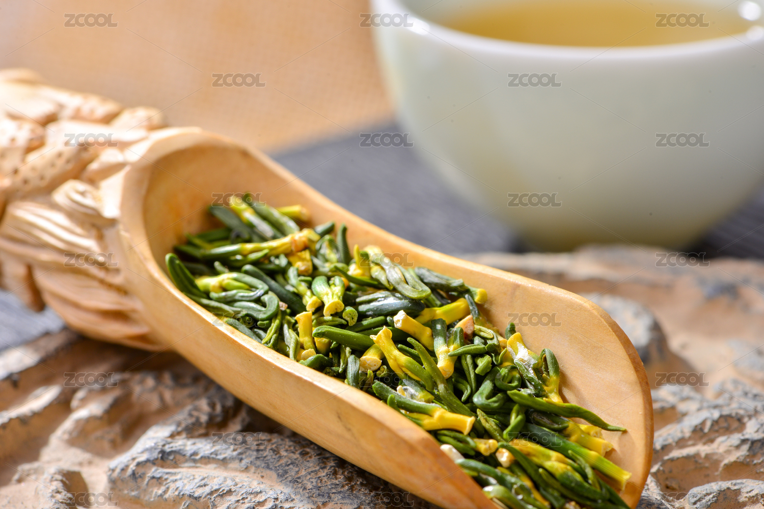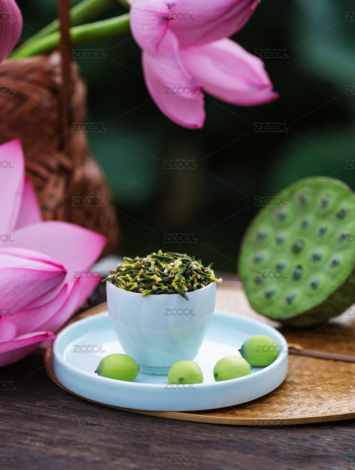 戶外桌子上杯子里裝滿了蓮子心