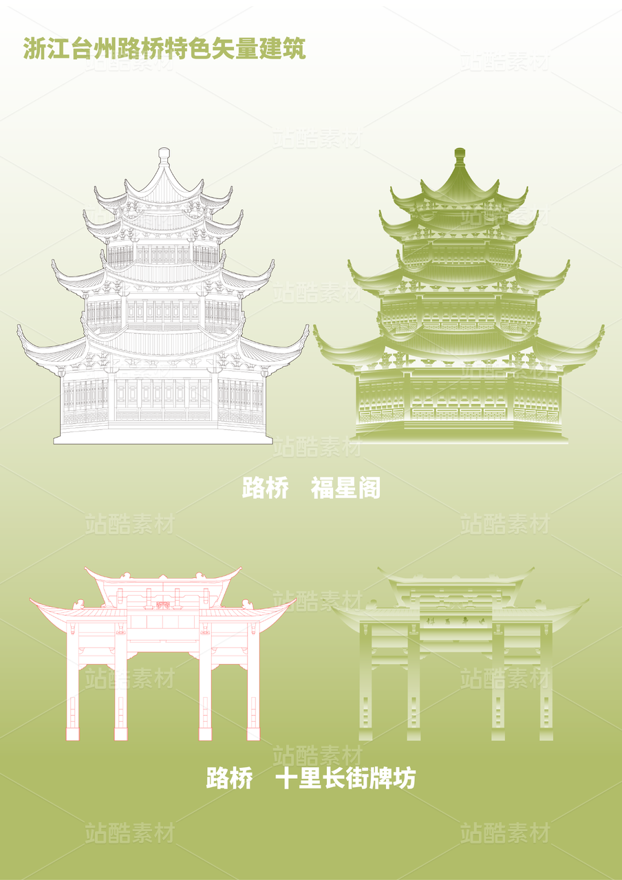 浙江臺(tái)州路橋特色建筑矢量