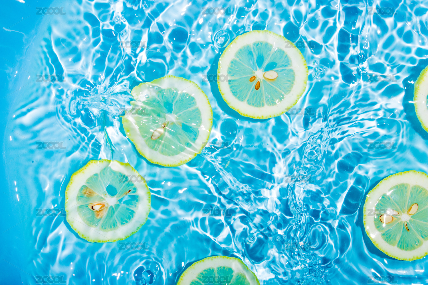 夏天冰爽晶瑩剔透的檸檬水漣漪